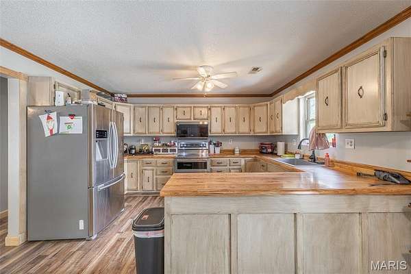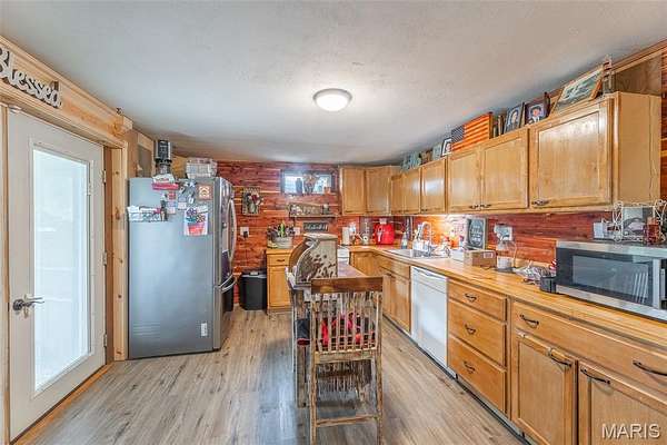 Enjoy the best of both worlds with this recently remodeled home in a peaceful rural setting, just minutes from town conveniences. Situated on 20 +/- scenic acres, this property offers the perfect blend of comfort, functionality, and space to roam. Inside, you’ll find a warm and inviting layout featuring a cozy sitting room with charming carsiding, a separate dining area, and an additional breakfast nook. The main level includes two bedrooms and two full bathrooms, including the owner's ensuite. The finished walk-out basement expands your living space with a full kitchen, one bedroom, and an additional room that could easily serve as a fourth bedroom, office, or hobby space. Step outside to the back deck and take in peaceful views of the surrounding pasture. The property includes fenced acreage ideal for horses or livestock, a horse barn with stalls, and a spacious workshop with concrete floors and electricity. A covered carport provides convenient parking at the walk-out basement level. Whether you’re looking for a private retreat, a hobby farm, or space to grow, this property offers endless possibilities!