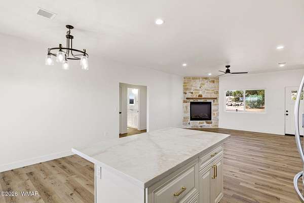 Brand new construction on 2.18 acres with stunning views! This 3-bedroom, 2-bath home offers an open-concept layout filled with natural light and upgraded finishes throughout. Enjoy enhanced cabinetry, upgraded mirrors, and thoughtful details that elevate the space. The living area features a beautiful fireplace and flows seamlessly into the kitchen and dining areas--perfect for everyday living or entertaining. The split floor plan provides privacy with a spacious primary suite and comfortable secondary bedrooms. Step out onto the large covered back porch and take in the breathtaking views. Complete with a 2-car garage--schedule your showing today, this one won't last!