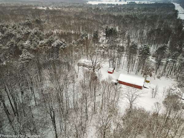 A beautiful homestead with so much to offer! 3 bedrooms 2 bath home with metal roof, central air, roll out awning, pellet fireplace and gas BBQ, a generator, water softener, near new appliances and a dog friendly deck. The garage is 34' x 54' with two overhead doors with remote, has electric, floor drain, and water. Also, for additional space, a 12' x 12' storage shed. Great green thumb garden area with an asparagus patch, assorted fruit trees and blueberry bushes. The parcel itself is 26 acres of woods complete with a nice hunting blind positioned in a nice hunting area, and a shooting range. This corner property is located close to the White River and close to shopping, church and schools. A quality listing, move in ready, that is available at closing