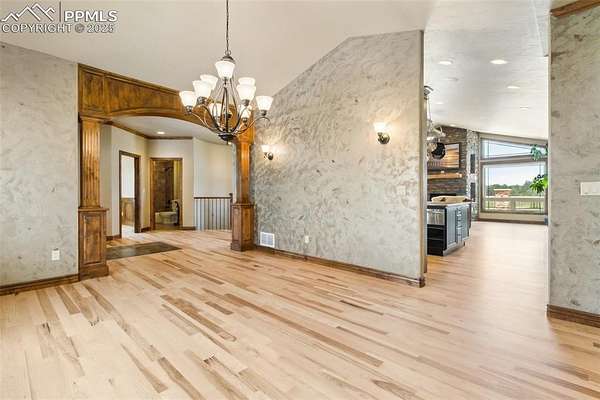Welcome to a truly exceptional property that seamlessly blends luxury living with peaceful country charm. Step inside to beautiful, newly resurfaced hickory hardwood floors, complemented by solid alder doors and trim throughout. The gourmet kitchen is a chef's dream, featuring alder cabinetry, a custom gas range, a Wi-Fi-enabled stainless steel refrigerator, pot-filler faucet, warming drawer, spice drawer, and a spacious walk-in pantry. Enjoy true main-level living with a luxurious primary suite that includes its own gas fireplace, a five-piece bath with a jacuzzi soaking tub, a large walk-in shower, and a custom walk-in closet with built-in shelving and drawers. Also on the main level is a versatile bedroom or office, beautifully finished with raised panel woodwork. The great room and dedicated dining room offer the perfect space for entertaining and gathering with family and friends. Downstairs, the finished lower level features a second family room with a gas fireplace and wet bar, three additional bedrooms, two bathrooms, and a flexible media room that also functions beautifully as an exercise space. Mechanically, this home is as impressive as it is comfortable: dual furnaces, dual hot water heaters, a Class IV roof (2024), and a whole-house generator hookup for peace of mind. The oversized four-car garage is a dream for hobbyists or those needing extra space, with hot and cold water, fluorescent lighting, ample shelving, and brand-new 8-foot doors. All of this sits on a stunning, fully fenced lot, featuring your very own private pond, frequently visited by deer, ducks, geese, and turtles. Zoned for horses, the property offers a quiet, rural lifestyle just minutes from town-an ideal blend of tranquility and convenience.