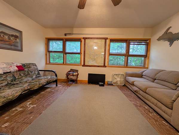 Est $1,503/mo80 Acres hunting camp on Sugar Island. Fantastic piece of high ground. Cabin has electric service and a force air furnace. A very comfortable camp. Property is rolling, heavily wooded with food plots and trails in place. Nice outhouse building with a urine diverting toilet as well as a shower and sauna.