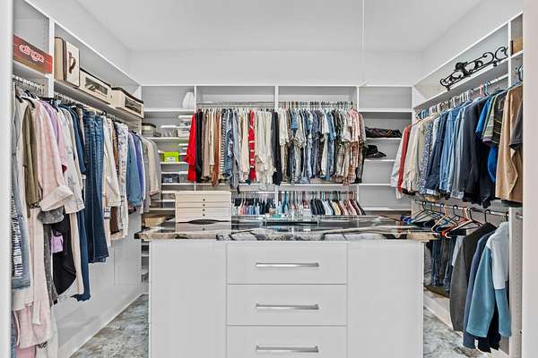 - Closet Cabinets, Foyer, French Door, Kitchen Island, Laundry Tub, Pantry, Roman Tub, Split Bedroom, Volume Ceiling, Walk-In Closet
