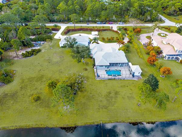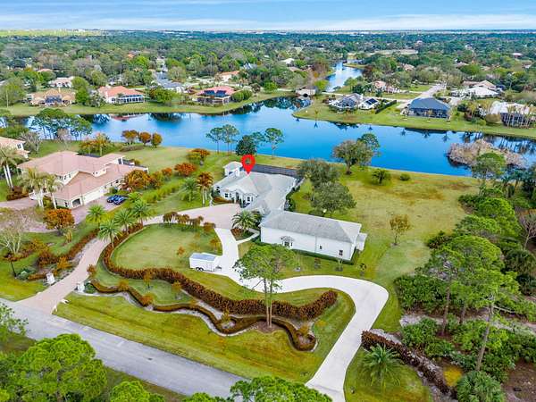 Custom Estate lakefront home in PGA Village. Experience refined estate living in the prestigious Sabal Creek at PGA Village. Situated on nearly 4 acres of private lakefront, this custom-built home offers exceptional space, privacy, and timeless design. The total home features approximately 6,000 square feet of living space with the 4 bedrooms, 4.5 bathrooms, a private office/den, a private 1-bedroom casita, and expansive living areas ideal for entertaining. A well-appointed gourmet kitchen includes a gas range, abundant cabinetry, and generous counter space, opening seamlessly to the main living areas. Outdoor living is highlighted by a screened pool and covered lanai overlooking tranquil lake views, creating the perfect setting for relaxation and gatherings. The property also includes