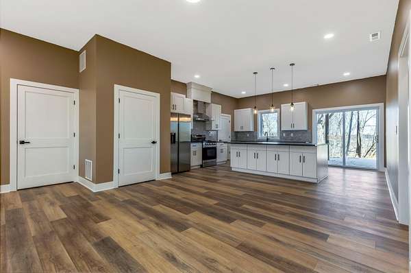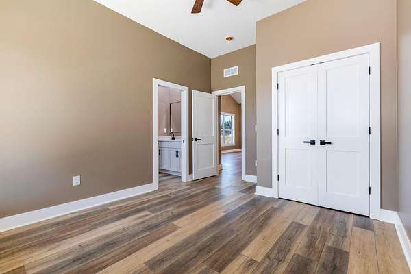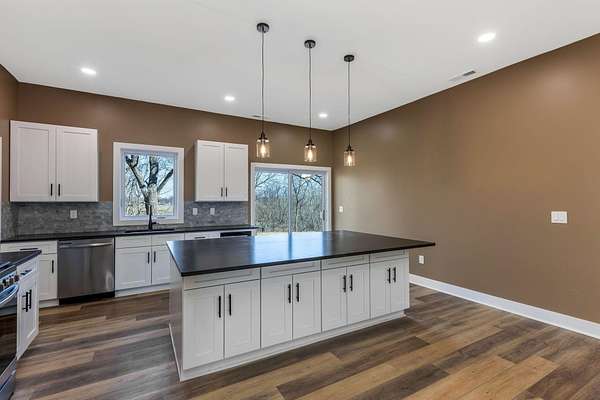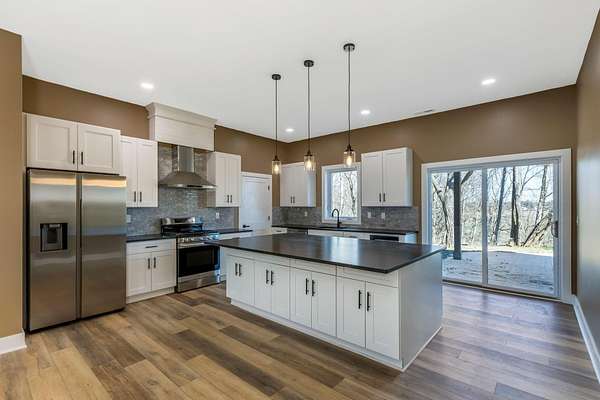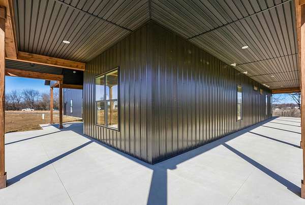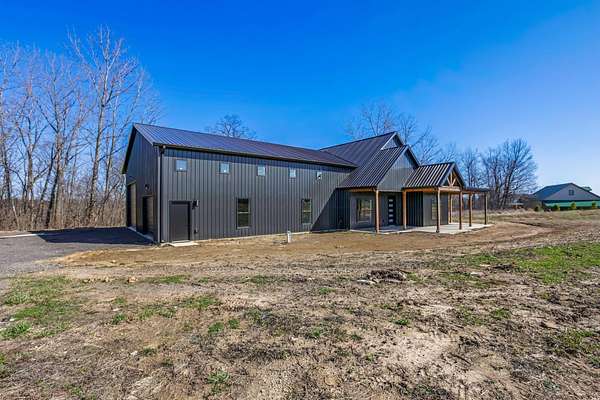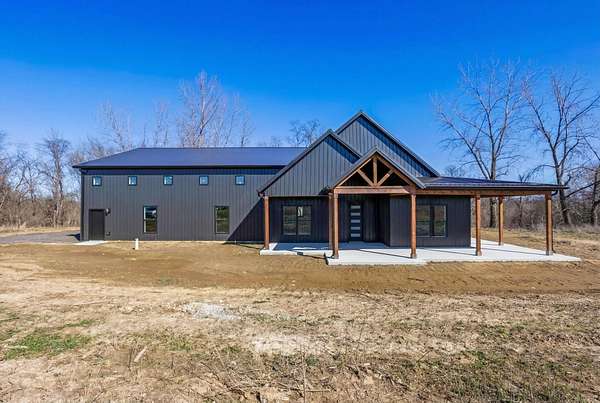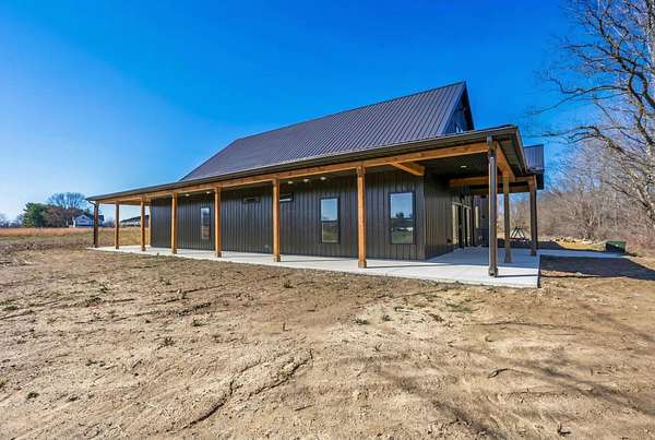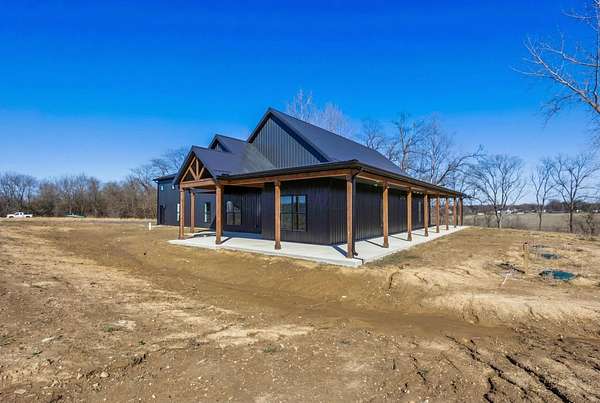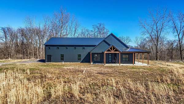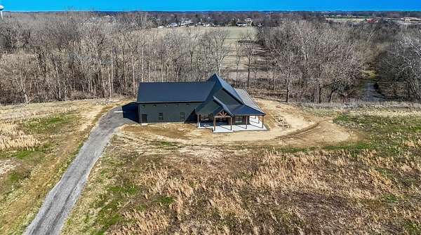 Stunning custom barndominium on nearly 5 secluded acres featuring a chef's kitchen, spa-like owner's suite, wraparound porch, and an incredible 40x43 garage/workshop. This incredible custom home offers nearly 2,800 square feet of finished living space and is perfectly set back off the road for ultimate privacy, all while overlooking the scenic beauty of Walnut Creek. Inside, you'll find a gourmet chef's kitchen highlighted by a massive granite island, abundant cabinetry, and custom finishes that make it perfect for entertaining or everyday living. The home features custom details throughout, including designer tile backsplashes and beautifully tiled showers with dual shower heads. The spacious Owner's Suite offers a private retreat with a large bedroom and massive walk-in closet. Additional living space includes a large bonus room with an ensuite full bath, making it ideal for a 4th bedroom, guest suite, or private home office. In total, the home features 3.5 bathrooms and flexible living areas designed for comfort and convenience. Enjoy peaceful mornings on the wraparound front porch or relax on the rear patio while taking in the breathtaking views of Walnut Creek and the surrounding countryside. The impressive 40x43 attached garage/workshop provides incredible space for vehicles, hobbies, equipment, or storage. With nearly 5 acres, scenic creek views, privacy, and custom craftsmanship throughout, this one-of-a-kind property offers country living at its finest.