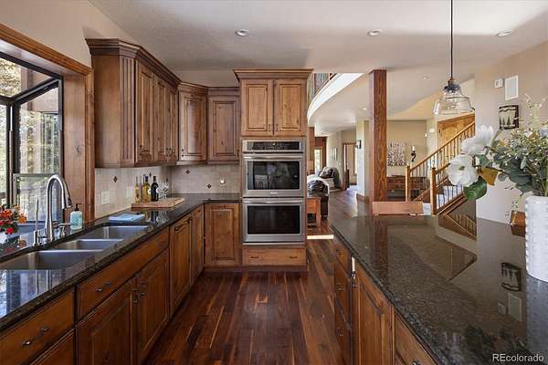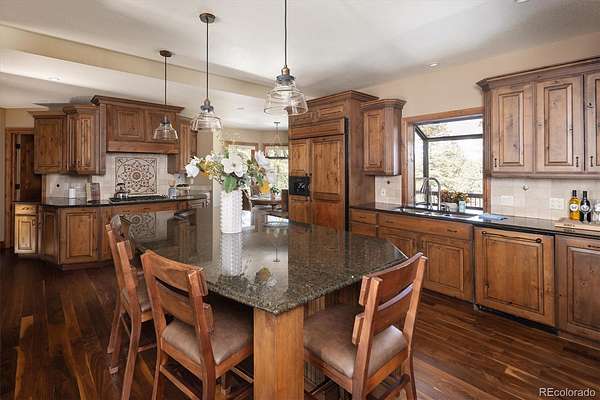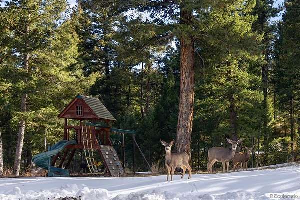 7837 S Settles Drive is located in Morrison’s Homestead neighborhood, a beautiful Foothills setting on the northwest side of 285 with no highway noise or visibility. The home sits on a private two-acre lot and was custom built, featuring real millwork throughout and great natural light with its expansive windows. It delivers many amenities homeowners desire, including a 3,000 square-foot contiguous garage (perhaps one of the largest-nicer residential garages you will ever see, with enough room for a golf simulator or activities for children). It’s a mountain home retreat with all the bells and whistles. Just a 10 minute drive to Conifer and accessible to all things in the western Denver metro area and Evergreen. On the main level you’ll find an expansive kitchen with a walk-in pantry, dining room with a very practical butler pantry/wet bar, the great room, a living room, a home office and great views out of every window. The primary suite is accessed via a catwalk. There are three other bedrooms and three additional bathrooms on the 2nd level and the “den" which could be a TV room, music space, playroom, a second home office or could be turned into an in-law or au-pair suite. In the walk-out basement is another bedroom, full bathroom, family room, game room, exercise room, and a hidden storage room behind the built-in book case. A wonderful opportunity to live in the Colorado foothills, offering an incredible floor plan with everything you want in a home.