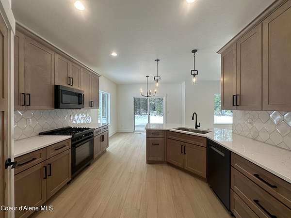 Set on 5 scenic acres, this 2-story, 2,822 sq. ft. home offers both a MAIN-FLOOR primary suite PLUS a second suite upstairs, creating flexibility for guests or multigenerational living. With 4 bedrooms and 3.5 baths, plus a 3-car garage, there's room for everyone. The light-filled floor plan brings together the living room, kitchen, and dining space in an open design built for gatherings. Thoughtful details include: Luxury vinyl plank flooring on the main level, BOSCH BLACK ON BLACK appliances...granite counters with 6'' backsplash, tile shower surround in the primary bath, smart thermostats for comfort and efficiency. Outside, enjoy durable cement board siding with stone accents, rain gutters, exterior lighting, and a generous covered patio that invites you to watch sunsets and spot local wildlife. All this just minutes from Lake Pend Oreille.