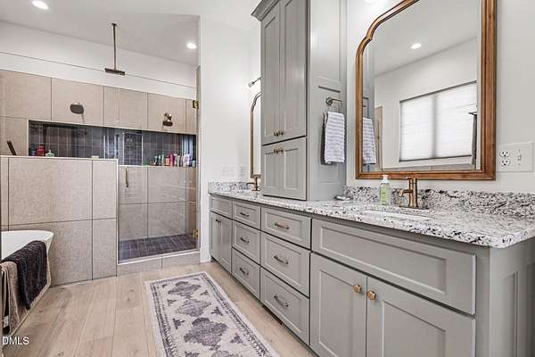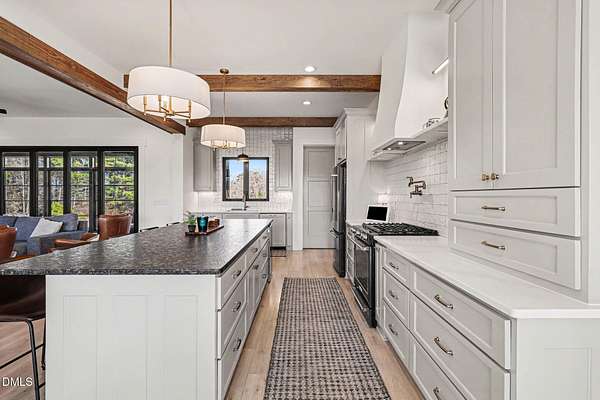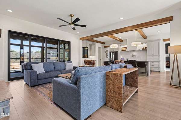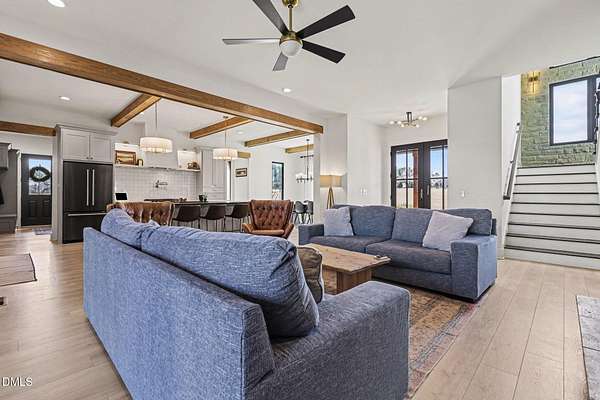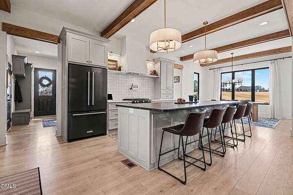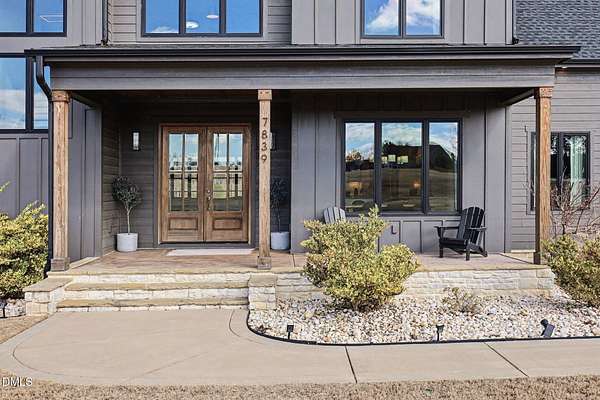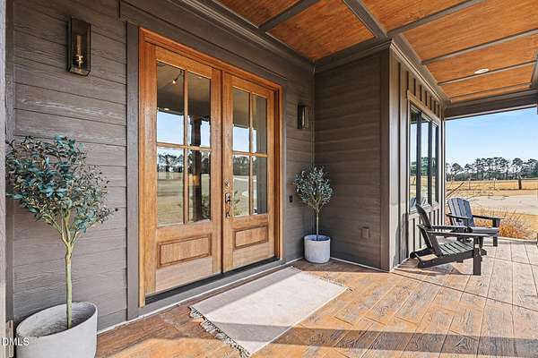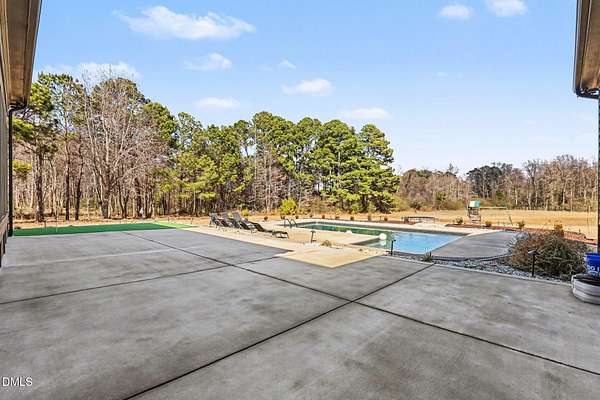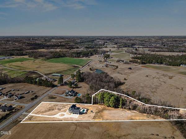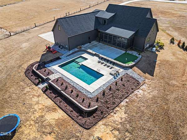 Stunning custom modern farmhouse set on nearly 6 acres in the heart of Johnston County, offering the perfect blend of luxury, privacy, and peaceful country living. From the moment you arrive, the home impresses with striking board-and-batten exterior, stone accents, and an inviting covered front porch. Inside, the home features a thoughtfully designed open layout with exposed wood beams, wide-plank flooring, designer lighting, and abundant natural light throughout. The chef's kitchen is the heart of the home, complete with a large center island, custom cabinetry, premium appliances, separate beverage fridge, Garage-to-pantry grocery door! The open plan into the dining and living areas--ideal for entertaining or everyday living. The living room showcases a stunning stone fireplace, custom built-ins with storage, creating a warm and welcoming focal point. The primary suite is a true retreat with a spacious bedroom and a spa-inspired bath featuring a luxury walk-in tiled shower with rainfall shower head, soaking tub, dual vanities with custom finishes along with an oversized walk-in closet. Upstairs offers three bedrooms each with full custom bathrooms. An additional living space located upstairs offers flexibility for a bonus room, home office, or media area. Step outside to your private backyard oasis, featuring a beautifully designed in-ground pool, expansive concrete patio, putting green, and 4-season screened porch, all overlooking open acreage and serene views. With nearly 6 acres, there's ample room for recreation, animals, gardening, or simply enjoying the quiet and privacy of country life. This exceptional property offers upscale finishes, modern farmhouse style, and room to grow--a rare opportunity to own a luxury home on acreage in Johnston County.