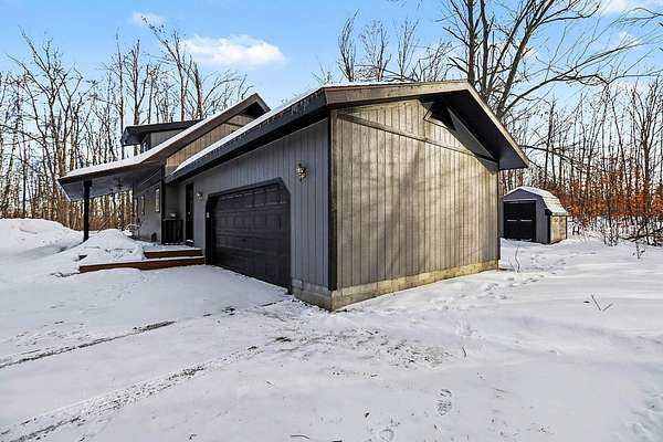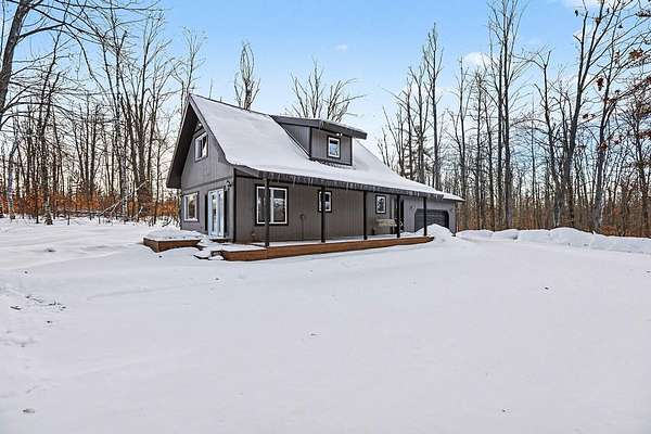 Freshly painted in ''25'' rich color's that blends in perfectly with hardwoods of birch, beach, maple, and oak that keep deer close, on 9.8 + acres. Numerous open decks and large covered front porch allows you to drink in Northern Mi., pristine beauty year round. This well built, lightly used chalet with 3 bedrooms and 2 full baths including a large mud room, utility room off of drywalled garage that allows storage for all the extra clothing and recreational equipment. Garage also ready for overhead heating unit easily installed. Home is equipped with hot water base board heat for highly efficient comfort and cost. This property has been used by family and friends lightly and lovingly the last 20 + years. Less then 10 minutes from 270 I-75 exit. Well on NE., corner. accessed on NE.,end Frontage and access to home is on West End with 300 + ' of Rd., frontage to keep other properties away but close enough to wave and engage if you choose. Quick and easy up and back. Hop skip and a jump to year round winter groomed and summer hiking trails. Short walk to Opal Lk. access and Michawye Club house and golf coarse. Otsego County your Four Season Recreational Leader in Mi. Where property is renowned for decades of great family memories in your UP NORTH CABIN in the Woods. So awesome you can move in year round or gently retire to this Chalet in the Woods.