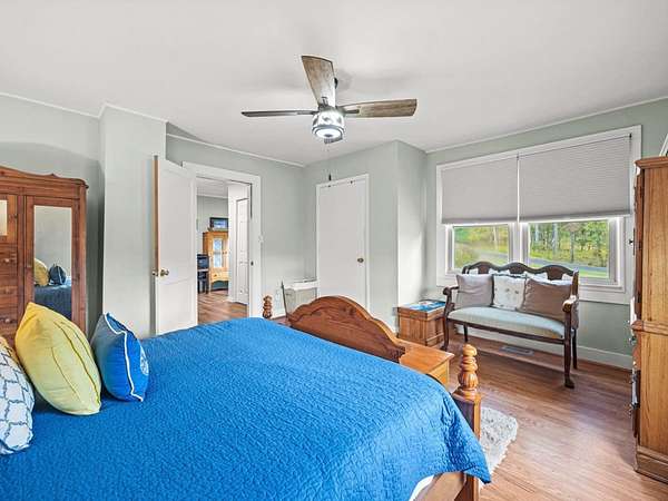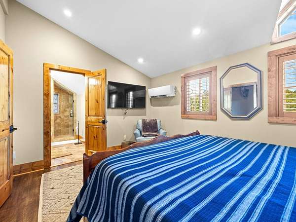 Accommodations for All: Approximately 2,990 heated square feet, sleeping up to eight guests in an owner's suite and three (four) upstairs bedrooms (1 king, 2 queen & 1 twin beds). A large hallway connects to an outdoor balcony with scenic views on one end and a sitting area on the other. Includes 1 full bath and one half-bath on this level; all furnishings are included. All bedrooms have their own mini split and flat screen TV.