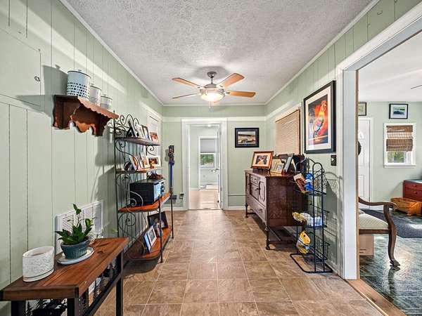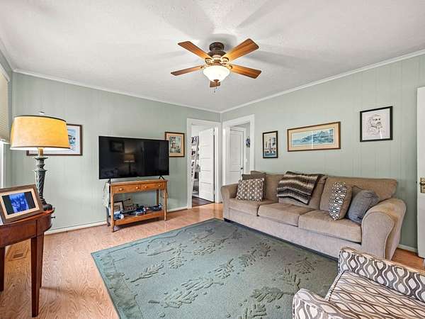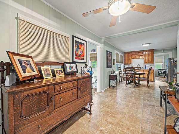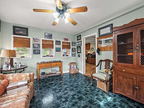 Sunroom, living room, and den/office
