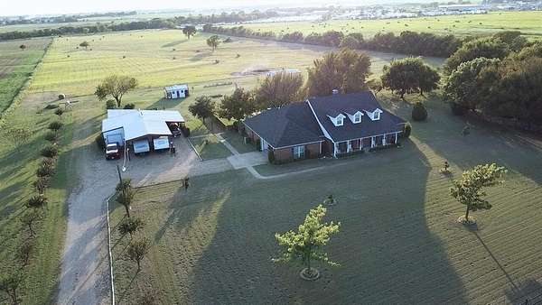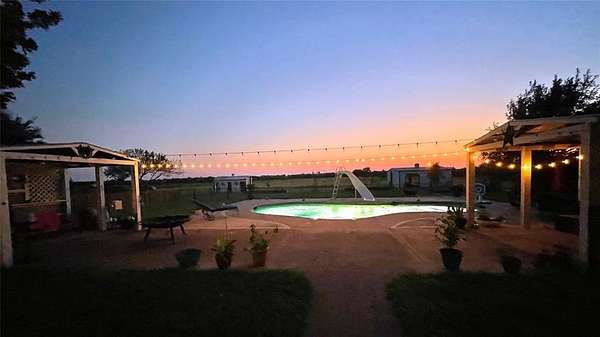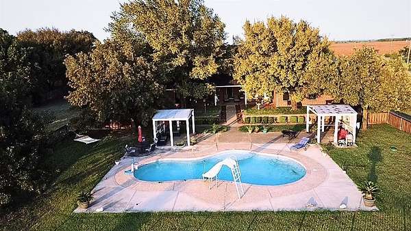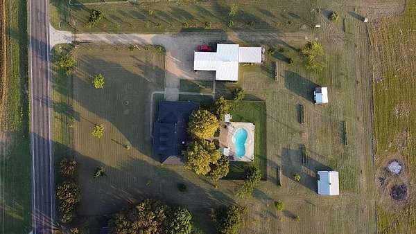 Experience the perfect blend of country charm and modern luxury in this beautifully updated 5-bedroom, 2.5-bath farmhouse set on 19 serene acres. Inside, you'll find an open-concept living area designed for everyday ease, along with a private dining room thoughtfully created for warmth and congenial gatherings. The kitchen features granite countertops and stylish finishes, seamlessly connecting to the main living spaces, ideal for entertaining or unwinding at home. The expansive primary suite offers a luxurious sanctuary, while the rest of the home reflects a high standard of quality and care throughout. Step outside to a sparkling pool shaded by mature trees, and take in the beauty of your very own fruit-producing orchard and established garden, perfect for seasonal harvests and homestead living. Outbuildings include a huge utility workshop, barn, chicken shed, and a secure storm shelter. With 17 acres under Ag exemption, this property offers both lifestyle and value. Whether you're dreaming of a family estate, hobby farm, or peaceful escape, this one-of-a-kind property offers space, serenity, and timeless style.