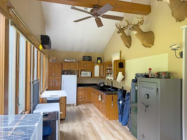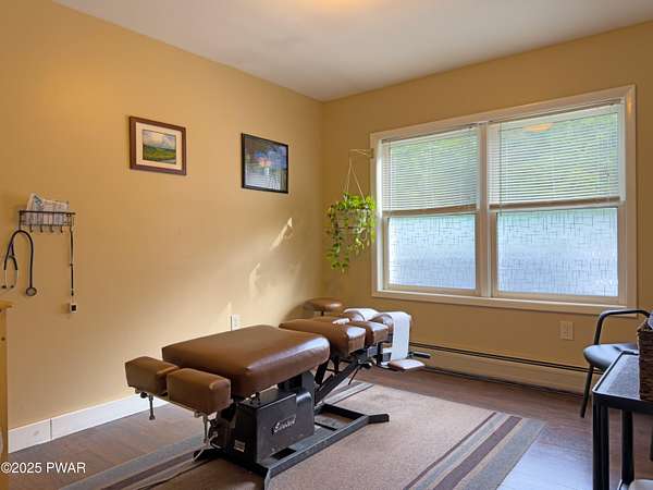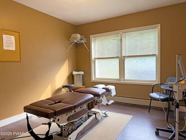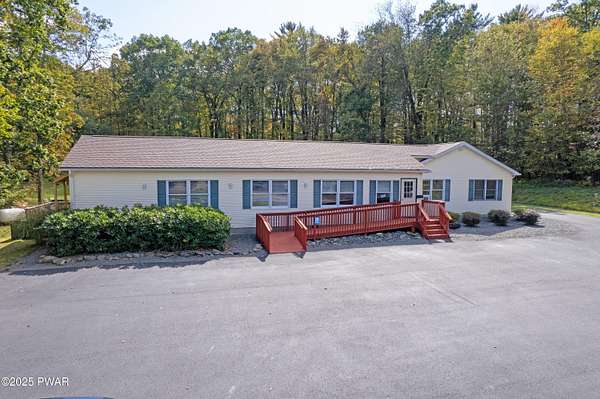 Opportunity is knocking! It's your chance to own a 2-unit building zoned both commercial and residential on over 2 acres located off of Route 590, just a mile from beautiful Lake Wallenpaupack. Enjoy easy, one floor living while still having plenty of room to entertain your friends and family in the large sun room with extra kitchen, on the back deck, or the spacious back yard with above-ground swimming pool. The commercial unit has waiting and front desk areas along with a full bathroom, 3 exam rooms, janitorial room, storage room, and kitchen area. The heat is hot water baseboard fueled by propane and A/C is mini-split. Separate electric meters. Located only minutes to Hawley or downtown Honesdale for shopping, restaurants, and entertainment!