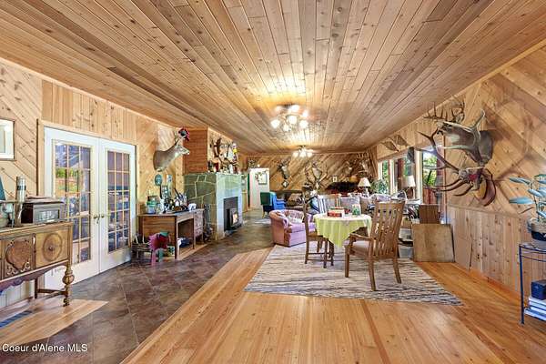 Escape to your own private North Idaho retreat on over 15+ pristine acres in a secluded, park-like setting with stunning territorial views and a large, beautiful pond perfect for fly fishing. This unique property borders private forest lands, offering a peaceful, nature-filled backdrop and ultimate privacy. At the heart of the property is a grand lodge-style home with over 11,500 square feet, an incredible canvas for your vision. Whether you're dreaming of a multi-generational estate, a wedding venue, a corporate or spiritual retreat center, or simply a one-of-a-kind private residence, the possibilities are endless. Currently configured with 4 bedrooms and 4.5 baths, the home features a spacious country kitchen with large dining room and expansive living areas ready for your finishing touches with endless possibilities for more living space. A rare opportunity to create something truly special in an extraordinary setting.