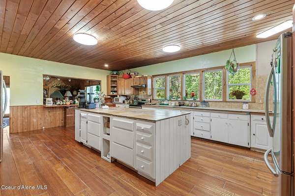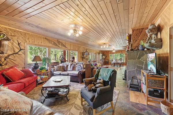 Escape to your own private North Idaho retreat on over 35+ pristine acres in a secluded, park-like setting with stunning territorial views and a large, beautiful pond perfect for fly fishing. This unique property borders private forest lands, offering a peaceful, nature-filled backdrop and ultimate privacy. At the heart of the property is a grand lodge-style home with over 11,500 square feet, an incredible canvas for your vision. Whether you're dreaming of a multi-generational estate, a wedding venue, a corporate or spiritual retreat center, or simply a one-of-a-kind private residence, the possibilities are endless. Currently configured with 4 bedrooms and 4.5 baths, the home features a spacious country kitchen with large dining room and expansive living areas ready for your finishing touches with endless possibilities for more living space. Also includes a 900' single wide mobile home. A rare opportunity to create something truly special in an extraordinary setting.
