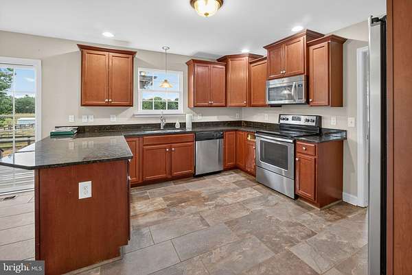 Bring your animals and settle right in-this 25-acre property is thoughtfully designed for equestrian and livestock living while offering all the comforts of a modern homestead. At the heart of the farm is a beautiful center-aisle barn featuring a custom concrete aisleway, four stalls with windows and overhangs on both sides, a hot/cold wash rack, a feed room, and a tack room with built-in lockers. Two additional small hay barns, a shavings storage building, and an equipment shed with attached workshop provide excellent storage and functionality. For added flexibility, the property also includes a three-stall shed row barn with feed room overhang, electric, and water. The 90x130 riding ring with sand footing and French drains ensures year-round usability, while the five fenced pastures with electric fencing that can be turned on/off, a fenced dry lot (previously used for mini horses), and three run-in sheds offer ample turnout and grazing options. Beyond the barns and paddocks, the property features adjacent woods with trails and open space, perfect for leisure riding, walking, or exploring nature. The custom-built 2012 Cape Cod style home offers a welcoming retreat after a day spent outdoors. The main level includes a primary suite with private access to the backyard outdoor shower, a cozy living room with fireplace, and a kitchen finished with granite countertops and solid wood cabinetry. Upstairs, a wide landing leads to two spacious bedrooms with abundant natural light and storage-ideal for family, guests, or a home office. Hardwood floors and natural stone tile flow throughout the home, adding warmth and durability. Step out onto the rear deck to enjoy sweeping views of your pastures and animals at play. With little to no ambient light, evenings bring spectacular stargazing right from your backyard. Although being sold in as-is condition, the property is well cared for with no known defects-a rare opportunity to own a turn-key farmstead so close to town. Whether you're looking for an equestrian haven, hobby farm, or peaceful country retreat, this property truly has it all. THIS IS A SHORT SALE AND ALL OFFERS WILL BE SUBJECT TO THIRD PARTY APPROVAL