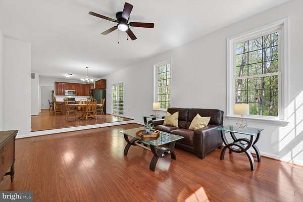 Incredible home on over 7.5 acres with over 4000 finished square feet of living space. Even better is the over sized 3+ car garage. So many options with this incredible home. The main level features hardwood flooring, updated kitchen, step down family room and Dining Room and separate Living Room. Upper level features gorgeous flooring and three generous bedrooms. The guest bath offers an updated vanity, designer fixtures and tile flooring. The laundry is located on the second level for utmost convenience. The primary suite offers a walk in closet and a en suite bath with separate tub, shower, dual vanities and updated fixtures. The lower level offers a rec room, bedroom and full bath plus tons of storage. All of this on 7.5+ acres and did we mention the detached garage! This garage features it's own electric panel and has space for all your tours. The lot offers an abundance of privacy and space for all your toys! Don't miss it. This will go fast! Located in sought after community with ball courts, tot lots, trails and more !