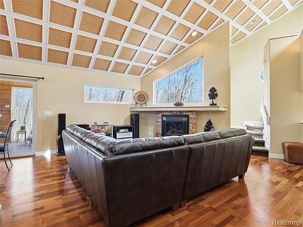 Stunning custom-built home on nearly 6 private acres surrounded by mature trees. Built in 2003 and tucked away down a long private driveway, this one-of-a-kind property offers 3 bedrooms, 2 full baths, and 3 half baths with beautiful views of the land from every window. inside, you'll find engineered hardwood floors in the great room, custom oak cabinetry, and unique textured concrete countertops with hand-painted leaf detailing. The spacious primary suite features a large walk-in shower, while the upstairs bedrooms share a convenient Jack-and-Jill bath. Designed for comfort and efficiency, the home includes radiant heat in the garage and primary bathroom (radiant heat in flooring, shower, shower bench, towel rack) an insulated concrete basement, and a three-season room engineered for radiant heat. The home has the laundry on the main level with a built-in ironing board inside the sink cabinet along with an under-counter laundry sink for convenience. The finished walkout basement offers additional living space with a family room, wet bar, and access to the outdoor fire pit area perfect for entertaining. Major updates include a newer roof (2 years), Trex decks, updated electrical and plumbing, central surge protector, replaced exterior window trim, a radon mitigation system and the window in the great room over the fireplace is in the process of being replaced. Durable Nobik premium polymer shake and Hardie Plank siding provide long-lasting, low-maintenance exterior finishes. A rare opportunity to own a private retreat with space, craftsmanship, and modern updates. Schedule your showing today!