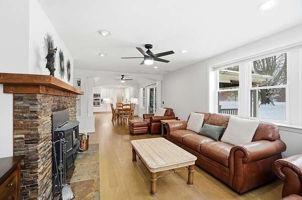 Welcome to 7847 Howe Road in Burlington, where country living meets modern comfort. This impeccably renovated home sits on nearly 7 fenced acres with two barns, a stocked pond, and both an attached and detached garage with loft and basement workshop. Inside, you'll find white oak hardwood floors, detailed molding, and graceful arched openings. Two masonry fireplaces add warmth and character, one featuring a wood-burning stove with a steel flue liner. The kitchen and living areas open to a covered porch with a ceiling fan overlooking scenic acreage. The primary suite offers a spa-like bath with radiant heated floors, one of three full baths throughout the home. With water and electric in both barns, city water, and high-speed internet, this property delivers the perfect blend of rural freedom and modern convenience, just minutes from town. Additional acreage available (at additional cost) if desired. When can you move in?