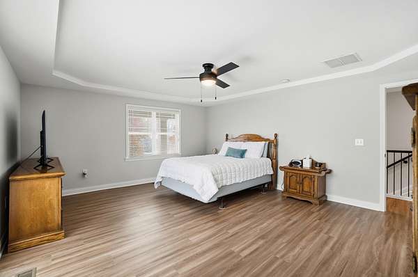 - Bookcases, Built-In Features, Ceiling Fan(s), Crown Molding, Double Vanity, Eat-In Kitchen, Multi Panel Doors, Pantry, Recessed Lighting, Soaking Tub, Tray Ceiling(s), Walk-In Closet(s)