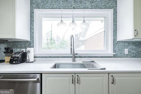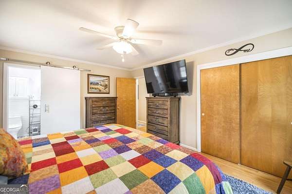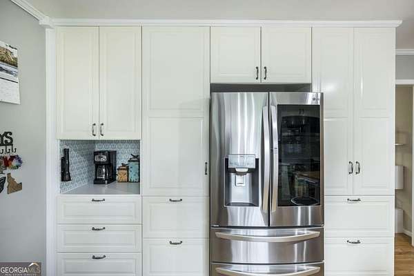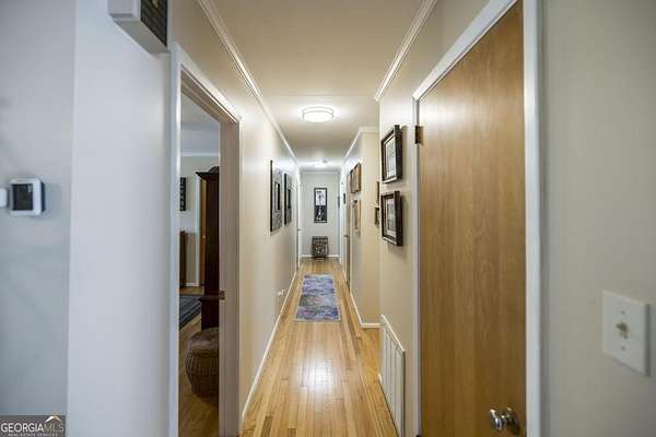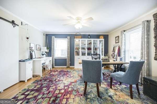 Rare opportunity to own a private 2.3-acre level retreat in Macon. This meticulously maintained 3-bedroom, 2-bathroom all-brick rancher features an open floor plan and timeless hardwood floors throughout. The chef-inspired kitchen is the heart of the home, boasting elegant quartz countertops, tons of counter space, and premium white cabinetry with custom built-in shelving. The interior also offers a dedicated home office with a stylish sliding barn door, perfect for a quiet workspace. Designed for those who need extra space, the property includes an attached 2-car garage plus a 2-car detached garage/workshop-ideal for car enthusiasts or DIY projects. Enjoy the serenity of a sprawling, wooded lot with plenty of room to roam, all while remaining just minutes from the dining and retail at The Shoppes at River Crossing and Downtown Macon.