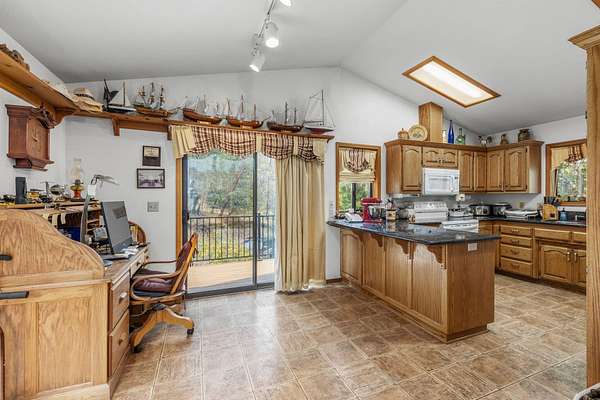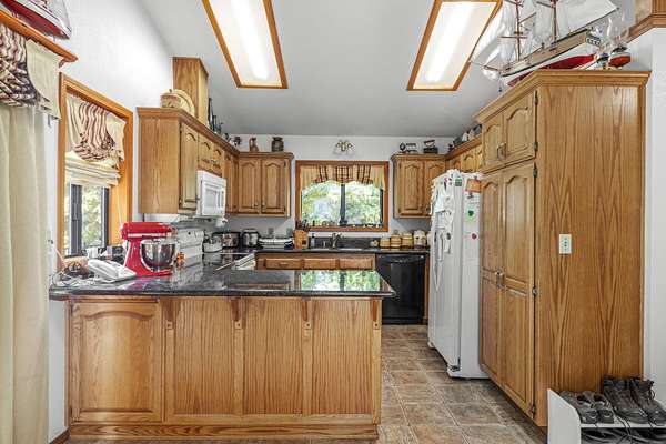 - Ceiling Fan(s), Double Vanity, Granite Counters, Kitchen Island, Soaking Tub, Vaulted Ceiling(s), Walk-In Closet(s)