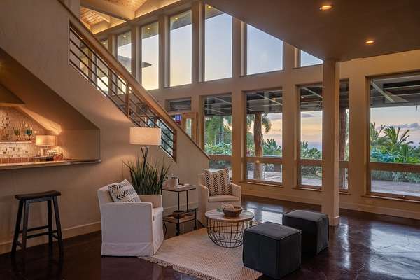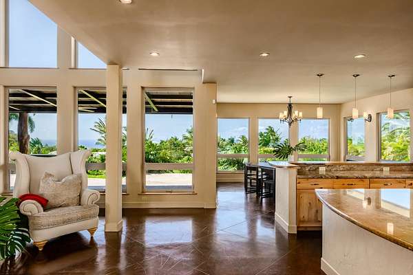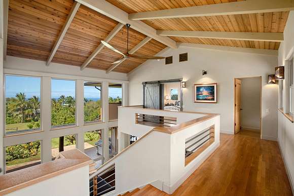 This estate is Maui North Shore perfection. West Kuiaha Meadows is the pinnacle of Haiku living. Stunning ocean views and dreamy trade winds, the home is perfectly situated to capture it all. The property is both lush AND sunny, a rare combination. The expansive main home is open and lofted with a north facing wall of windows allowing for uplifting ocean views from almost anywhere in the house. The wide central staircase to the open catwalk hallways amplifies the unencumbered feel. Multiple covered lanais allow for gatherings or a quiet place for personal retreat. The main floor primary bedroom includes a sunroom for wellness treatments or home office. A large upstairs room was converted to a music studio with a sound booth. The chef's kitchen compliments the entertaining qualities of this home. Large PV system with new Tesla Powerwall 2. The beautifully designed custom aluminum front gate and paved driveway leads to an oversized 3-car garage, plenty of room for cars and your north shore toys. Pastoral landscape with abundant fruit trees and tropical vegetation. Two small barns for your love of animals and farming endeavors. The cottage is a fully permitted 1 bed / 2 bath + office, built in 2018 with a separate address, driveway, and a detached garage. Owner holds an active real estate license in the State of Hawaii.