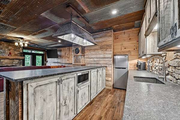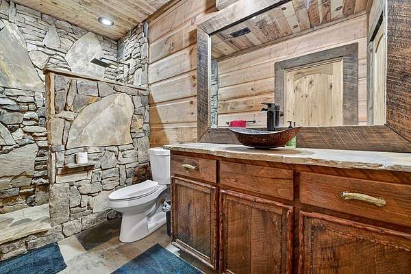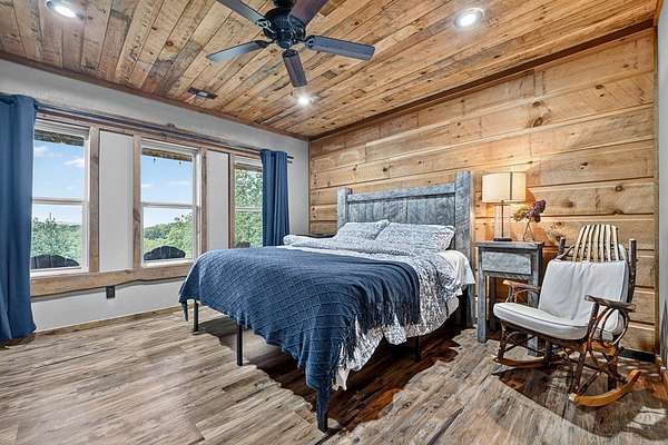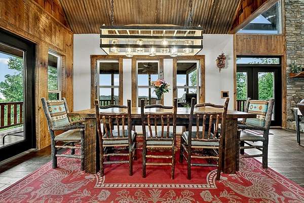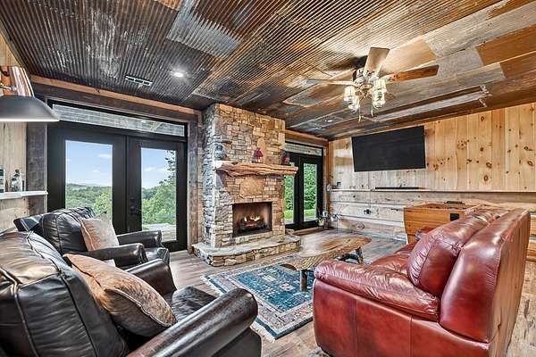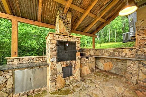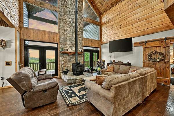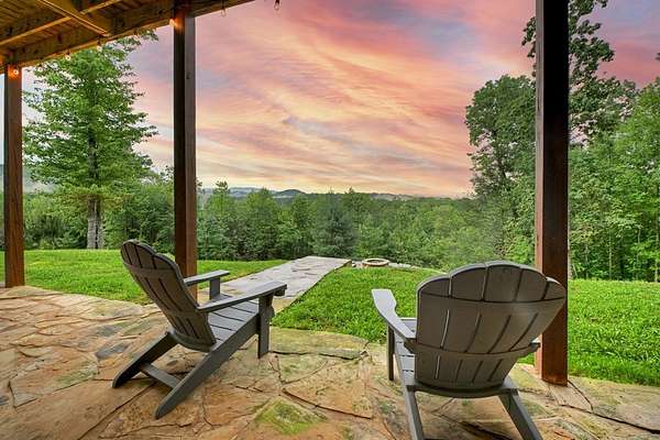 Privately tucked away on over 27 pristine acres, this custom-built 5 bedroom, 5.5 bath chalet captures breathtaking long-range views of the Blue Ridge Mountains. Surrounded by nature and bordered by USFS land, the property offers unmatched privacy with a serene creek meandering through. Designed for both comfort and style, the home features a soaring great room with a wall of windows to frame the mountain vistas, a floor-to-ceiling wood burning stove, and a spacious loft. Each bedroom is en-suite, providing luxurious privacy for family and guests. The gourmet kitchen boasts custom cabinetry, premium finishes, and an open flow perfect for entertaining. After a day outdoors, unwind in the indoor sauna, gather at the outdoor stone fire-pit under the stars, or fire up the built-in BBQ for mountain-side dining. A large barn/workshop offers endless possibilities for hobbies, storage, or equipment. With a mix of rolling pasture, hardwood forest, and creek frontage, the land is ideal for exploring, recreation, or simply enjoying the peaceful surroundings. A rare opportunity to own a true mountain retreat crafted by the builder for himself and his family with uncompromising space, privacy, and custom craftsmanship—just minutes from all the beauty and adventure the Blue Ridge area has to offer.
