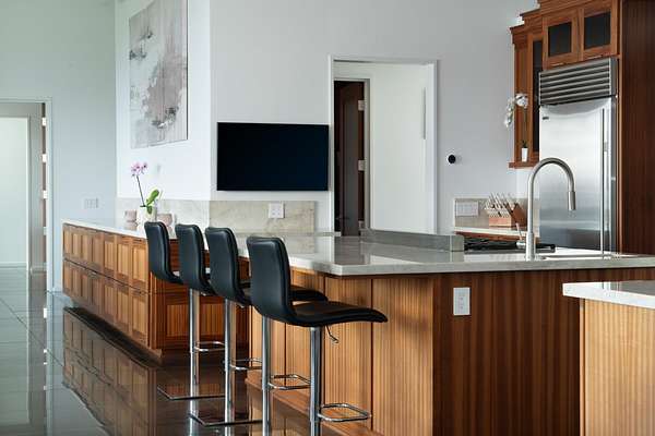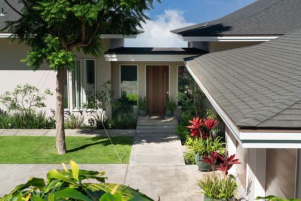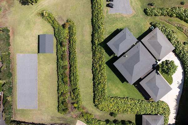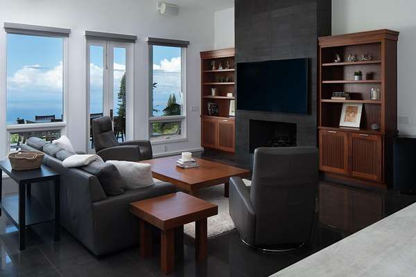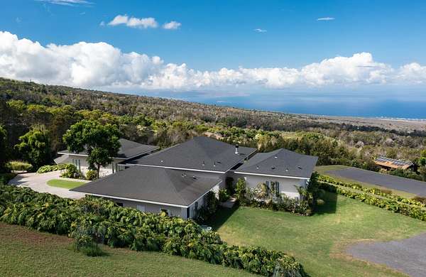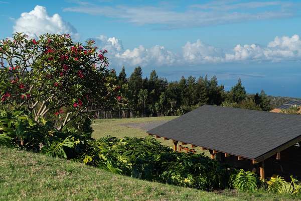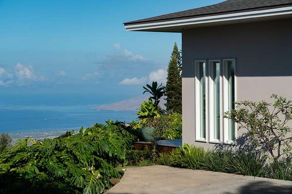 Set in one of Kula's premier Upcountry locations, this nearly 4,000 sq ft single-level residence showcases modern design, seamless flow, and commanding views of Lanai, Kahoolawe, and Molokini. Clean architectural lines, high ceilings, and expansive glass walls create a sense of openness while framing the panoramic ocean views. The thoughtfully designed floor plan centers around a spacious great room that connects the living, dining, and kitchen areas to an expansive lanai, ideal for effortless indoor-outdoor living and enjoying evening sunsets. The kitchen is a contemporary showpiece with custom cabinetry, stone countertops, and top-tier appliances, designed for both form and function. The spacious primary suite, located at one end of the home, features walk-in closets, dual sinks, and a private office entrance. Two guest suites are thoughtfully placed on the opposite side of the living space, ensuring privacy and maintaining the same standard of quality as the rest of the home with upper loft areas for additional space. The home includes three bedrooms and three bathrooms, along with a 1,100 sq ft garage that includes an office and storage, and a 600 sq ft auxiliary building suitable for a studio or other creative space. This contemporary home was designed with intention where every room connects to the land, light, and views that define Kula living.