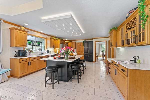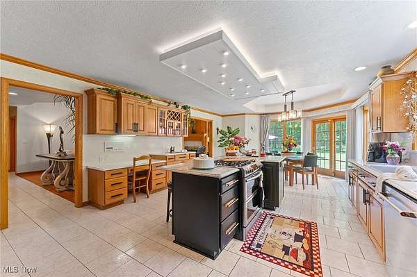 - Breakfast Bar, Built In Features, Chandelier, Coffered Ceilings, Crown Molding, Double Vanity, Eat In Kitchen, Entrance Foyer, Granite Counters, High Ceilings, Jetted Tub, Kitchen Island, Natural Woodwork, Primary Downstairs, Recessed Lighting, Tray Ceilings, Vaulted Ceilings, Walk In Closets