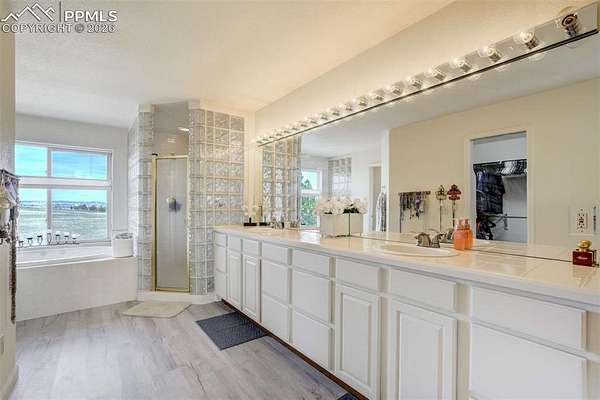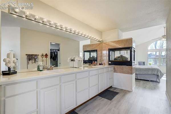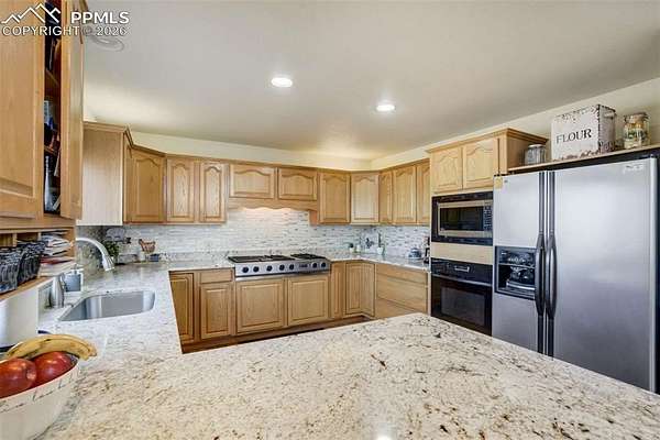 Nestled on 6.13 acres, this one of a kind custom 5 bedroom, 5 bathroom home, which is well lit by an abundance of natural light, is a definite must see. Upon entering the family room and dining area you will see a floor to vaulted ceiling stone fireplace with a raised hearth which provides a luxurious centerpiece to this beautiful setting. The living room to the north offers high ceilings and plenty of room for entertaining. The gourmet kitchen boasts granite countertops, gas stove with grill, and down-draft fan. A second dining area provides access to a large wrap around deck with magnificent mountain views and plenty of room for outdoor entertaining. In the entryway a beautiful wood stairway leads to the upper level and a spacious master bedroom with raised fireplace, spacious walk-in closet and a 5-piece master bath with jetted tub. The upper level also features two spacious bedrooms adjoined by a Jack-and-Jill bathroom and balcony which overlooks the family room and dining area. The finished lower garden level includes two bedrooms, each with separate bathrooms, a family room, fireplace, and a kitchenette. The kitchenette features a tiled counter, sink, mini refrigerator and dining area. The garden level also has a walkout sliding door providing access to a patio covered by the wraparound deck above. This property is zoned for horses and chickens. Black Forest Fire & Rescue located on Ridge Run Dr. is less than a mile away.