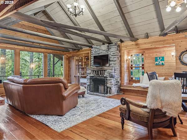 Unique, artist designed Cabin on the North Fork Nehalem River priced to sell. A fisherman's paradise with almost 200' of river frontage in a popular stretch below the hatchery. Rustic feel 2 story with basement and loft. Open high ceiling with exposed log beams. River Rock fireplace keeps the cabin warm and adds wonderful ambience. 2 heat pump heads and zoned heating throughout. Very private featuring both open areas and heavier forested pockets. Ample storage. Garage is tuck-under with entrance into the main living area. Propane powered generator keeps the house lit and warm no matter what winter storms try to bring. Opportunities like this one are few and far between. Priced to sell - this one will be gone quick so don't delay!