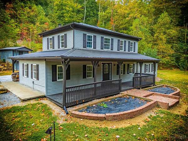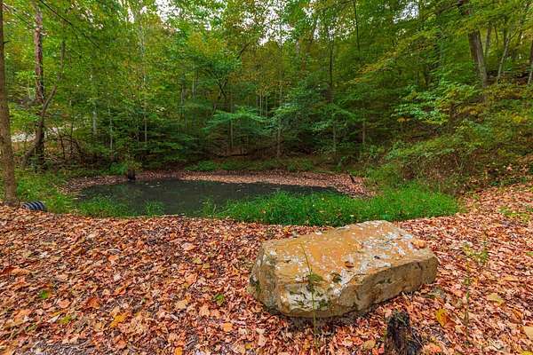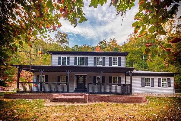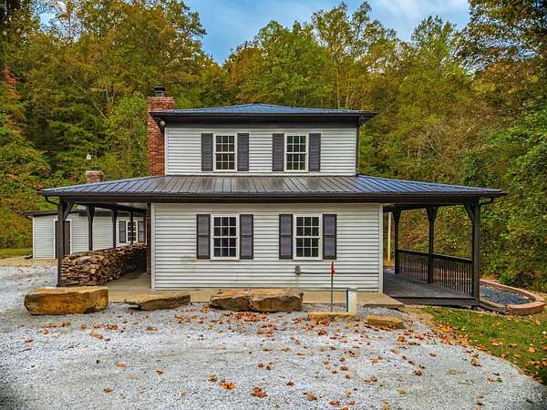 Discover a peaceful retreat, nestled atop a hill on 10 country acres, surrounded by towering trees and beautiful wildflowers. This one-of-a-kind property with 4 bedrms., 3 full baths. Highlights include a spacious living room with charming brick wood-burning fireplace, dining area, gourmet kitchen w/ stainless steel appliances, abundant cabinetry, work island and recessed lighting. Step-down into the king-size primary suite with intimate fireplace adjoining bath and French doors leading off to back patio. Detached garage and natural spring on property.Immediate occupancy! At last, if you're searching for a home, where the setting is serene, the air is cleaner, and neighbors are out of sight, this private sanctuary is the perfect place to call home!