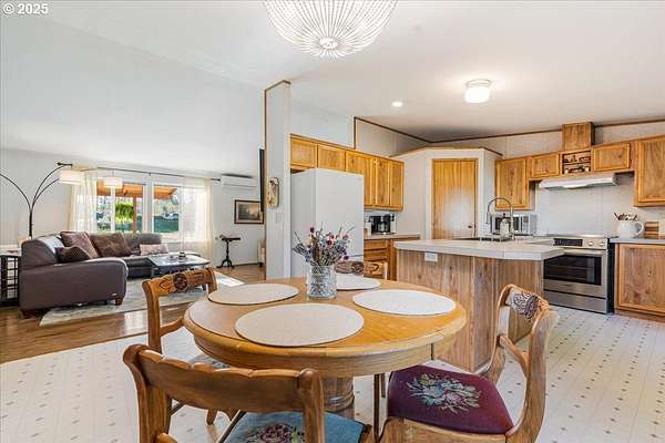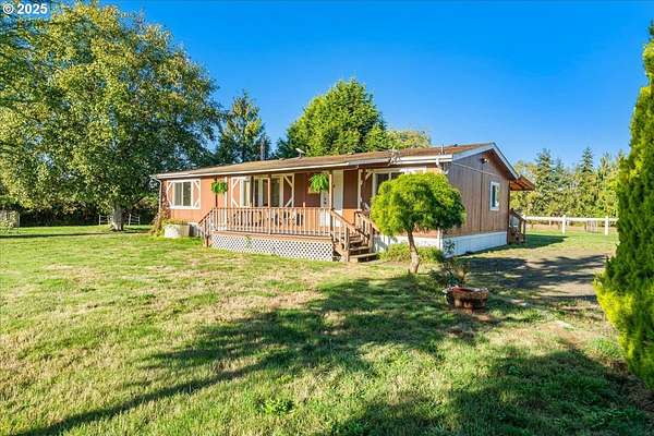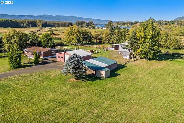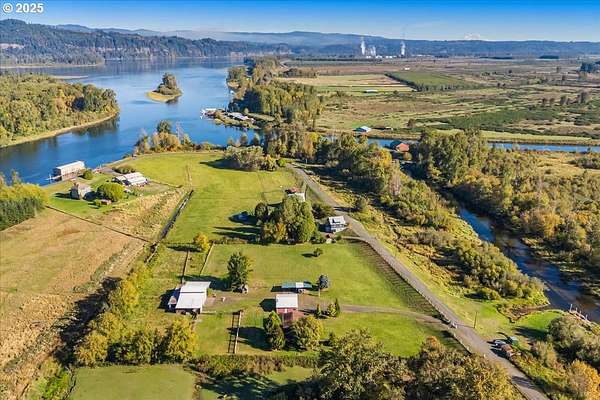 Welcome to your dream property! Relax on the front or back covered porches and take in the territorial views, watch the morning mist evaporate off the Columbia or catch a bald eagle soaring overhead. This 3 bedroom 2 bath manufactured home sits on a slab foundation and has been lovingly updated with new flooring in bedrooms and living space, French doors off the primary suite leading out to a hot tub, remodeled primary and main bathrooms and a new Bosch range in the kitchen. The 12x20 back porch is perfect for dinner parties with a dramatic sunset as your backdrop. Just under 5 acres fully fenced and cross fenced ready for your animals. The barn has 4 horse stalls, a tack room, hay loft and much more. There's also plenty of room and covered parking for all your toys and equipment. The 30x40 heated shop has two bay doors, an overhead hoist, workshop and sink. The carport has 4 bays and a tall roof for large equipment. Across the road is an additional strip of land with your own dock on a slough that connects to the Clatskanie and Columbia rivers - perfect for fishing, kayaking or paddle boarding. You're also a short drive from kiteboarding hotspot Jones Beach and fun hiking adventures. Finish upgrading this house to your liking or build your dream home on this amazing property!
