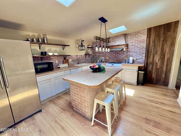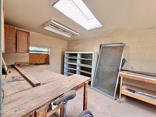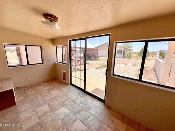 New well and pump! Country home on 2.67 acres just 15 miles from I-10 in Willcox! This 3-bedroom, 2-bath home offers multiple separate living areas, with potential to open up the layout into a more modern open-concept design if desired. An Arizona room on the South end of the home provides additional flexible space to enjoy year-round! The main living area features a closed-off chimney, offering the option to install a wood-burning stove. There is a long front porch with beautiful mountain views, and a fenced in back patio area. There are several outbuilding that provide great flexibility--currently for storage but could be transformed into a home office, workshop, or hobby space. The property also features a spacious shop in the back with both a double and single garage door, plus plenty of interior room and additional attic storage. All buildings feature durable metal roofs, and the property is equipped with a brand new well and pump, along with a water heater just 3 years old, offering added value and peace of mind.