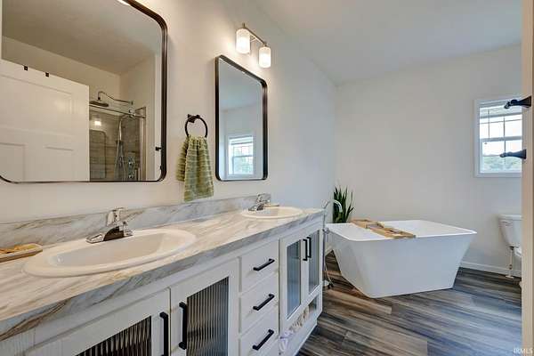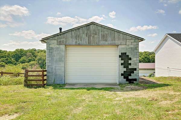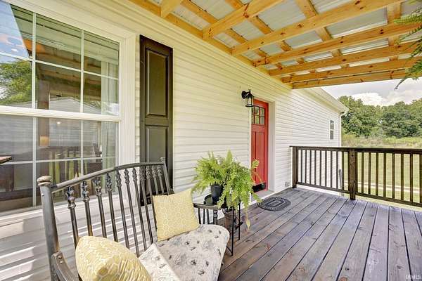 Embrace country living with room to breathe. Nestled on 5+ wooded acres, this move-in-ready Clear Creek home offers modern farmhouse charm, a flexible studio/workshop, and a brand-new back deck for quiet mornings or sunset dinners. Inside, you’ll love the open-concept layout with 9’ ceilings, a center island kitchen, and spacious living room—perfect for hosting or relaxing. The nearly finished walk-out basement offers endless potential: home office, gym, guest suite, or creative space. Bonus perks include a detached garage with a two story studio space, large chicken coop, high-speed fiber internet, and whole-house generator hookup. Whether you dream of homesteading, working from home, or simply enjoying your own private acreage, this home is ready for your next chapter—just 45 minutes from Bloomington and 30 from DePauw.