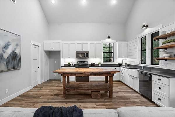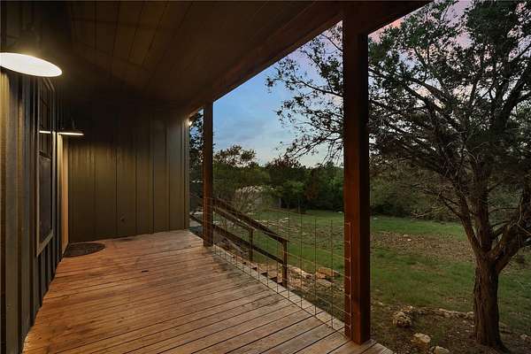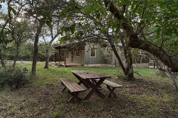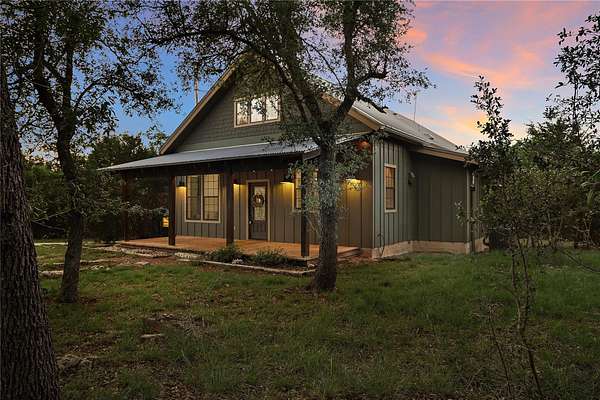 Tucked away on 1.8 acres in the quiet Henly area, 786 Beauchamp offers privacy, a farmhouse design, and a true Hill Country setting just 10 minutes west of Dripping Springs. Built in 2016, this custom home features 2 bedrooms, 2.5 bathrooms, and a light, open floor plan with vaulted ceilings that create an inviting and light filled space. Inside, you'll find designer paint, beautiful tile selections, and durable faux wood tile flooring. The layout includes a dedicated dining room, an office nook, and a living area centered around a freestanding wood-burning stove that adds warmth and character for the cool winter nights. Both bedrooms have many windows with craftsman style molding and new carpet. The primary bedroom has a walk in shower and walk in closet, while the second bedroom has a shower/tub combo. Outdoor living is just as appealing, with large covered front and back porches overlooking peaceful surroundings filled with native wildlife, many deer who bed in the yard, and seasonal wildflowers. The property is fully fenced in both the front and backyard and includes a well insulated, detached two-car garage with workshop space and additional bathroom. There are many trees that have been trimmed with deer trails within the fence making your own walking path and giving plenty of privacy. Set within a small neighborhood with a low tax rate, the home is serviced by rainwater collection and a septic system, offering a more self-sufficient lifestyle. Located in a Dark Sky Community, the setting is exceptionally quiet with expansive night skies. A well-designed home in a serene setting, this property offers a rare opportunity to enjoy single level living in the Hill Country living with both privacy and a sense of community. Schedule your tour today!