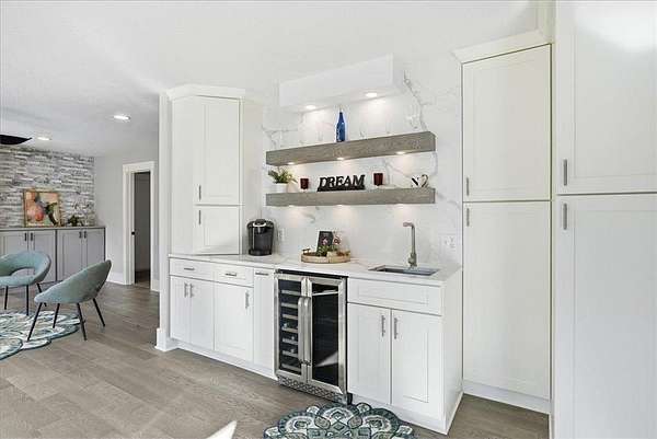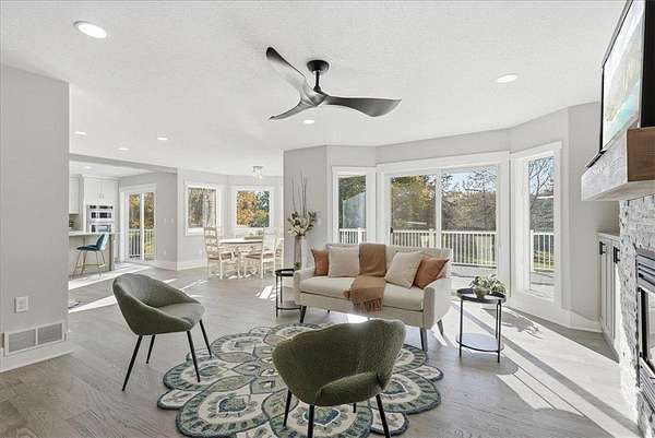Beautifully renovated and thoughtfully designed, this 4 bed, 4 bath home rests on a spacious 2 acre corner lot surrounded by mature maple trees and lush landscaping. The interior blends modern comfort with character, featuring 100 year old reclaimed gray washed barn wood accents, quartz countertops, maple cabinetry, a stylish wet bar, and engineered hardwood flooring.