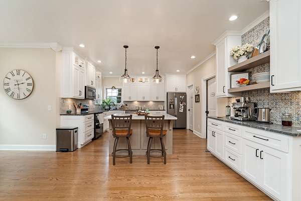 Throughout the home, refinished wood floors add timeless elegance and warmth. Additional highlights include an oversized two-car attached garage with convenient access to the kitchen, a new HVAC system, a tankless water heater, and numerous thoughtful updates throughout. Outside, upgraded landscaping enhances curb appeal and provides a lush, welcoming environment for outdoor enjoyment.