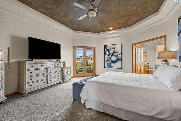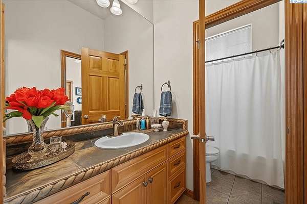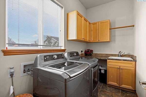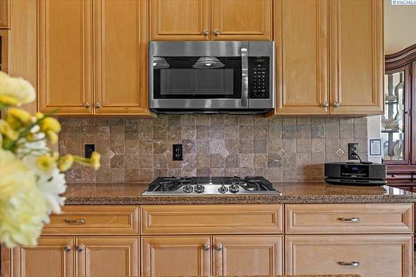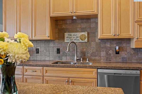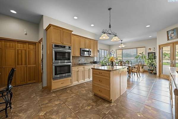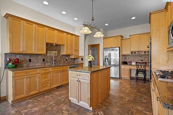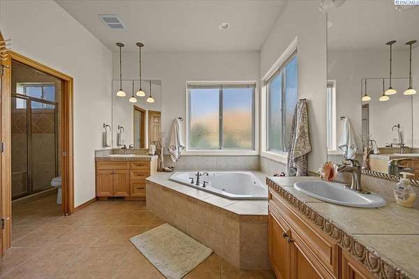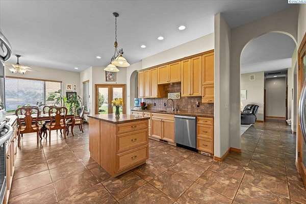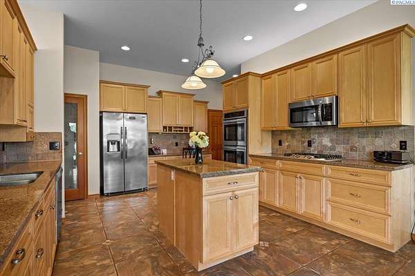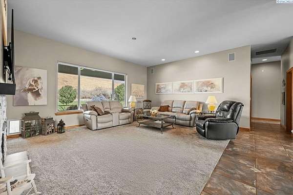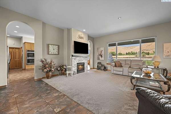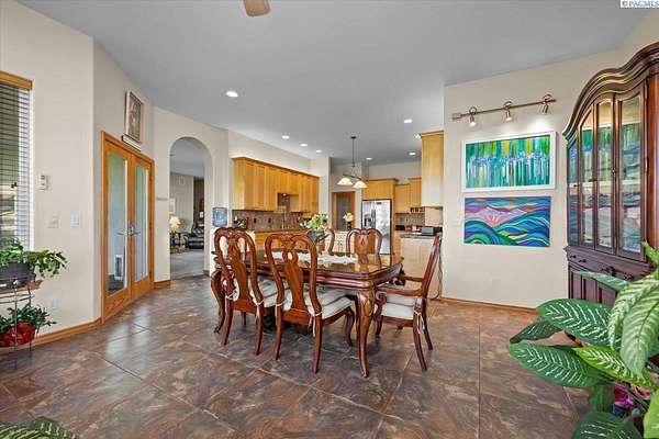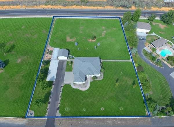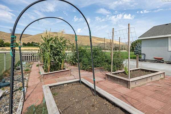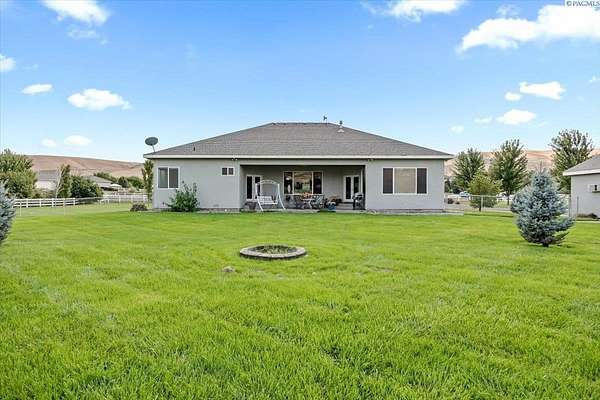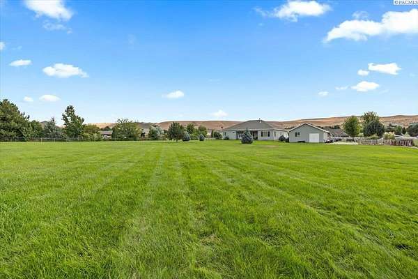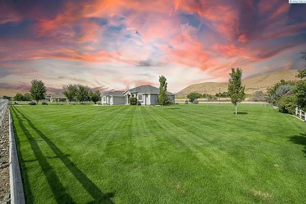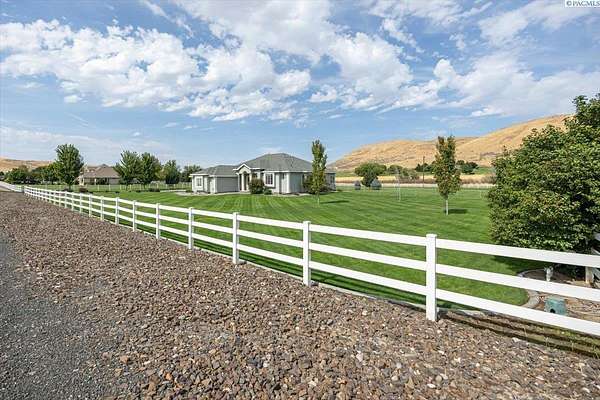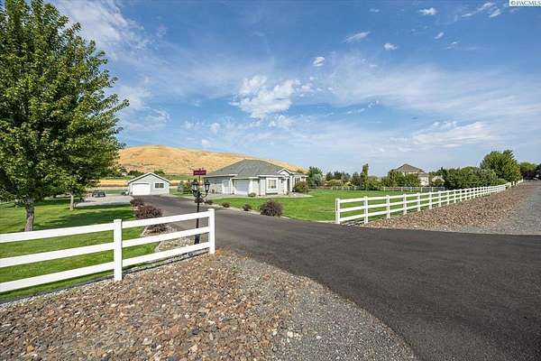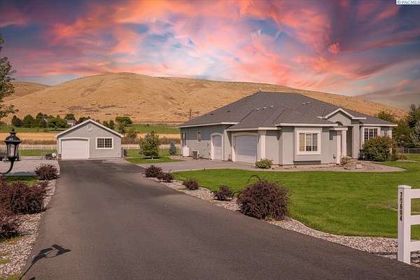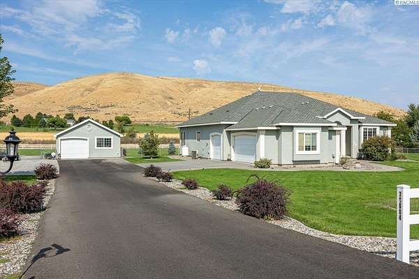 MLS# 287461 This Don Pratt custom home offers the ideal combination of craftsmanship, thoughtful planning, and a location that balances privacy with convenience. Nestled in the quiet setting of Badger Canyon and surrounded by the Horse Heaven Hills, the property provides both a scenic backdrop and a practical environment for acreage living. The 2 acres are fully secured with a ranch-style fence along the perimeter and interior chain link designed to keep pets safe while deterring unwanted wildlife, creating a controlled and well-maintained outdoor environment. Inside, every detail has been considered: each of the three bedrooms features its own ensuite bath, ensuring comfort and independence for family or guests. The master suite offers dual vanities, a jetted tub, and French doors that lead directly to the patio, perfectly positioned to capture both the breathtaking sunrises and vibrant sunsets unique to this canyon setting. Flooring is finished with 24-inch slate tiles for durability and visual appeal, while coffered ceilings in the dining room and master bedroom add architectural refinement. The kitchen is highly functional, with stainless steel Frigidaire appliances, double ovens, granite countertops, and a built-in microwave, designed to support both everyday living and formal entertaining. Practical upgrades reinforce peace of mind: the well pump and water heater are less than two years old, the roof is a 50-year presidential, and the driveway was resurfaced with new asphalt just one year ago. Added conveniences include a central vacuum system, tiled three-car garage, remodeled fireplace with switch, and RV parking. The property's shop is a true asset, featuring air conditioning, an additional bay for vehicles, and a flexible room that could serve as a private studio or home office, offering adaptability for personal or professional needs. Outdoors, the yard provides multiple options: a well-designed garden with seven raised beds for growing produce, ample space for pets or recreational use, and wide-open views of the surrounding hills. From the back patio, the daily rhythm of sunrise and sunset becomes part of the home's experience, offering a consistent reminder of the beauty of this unique location. For buyers seeking a property that demonstrates quality construction, efficient design, and enduring value, this home in Badger Canyon stands as an intelligent choice--balancing function, beauty, and long-term investment potential. Some photos AI staged
