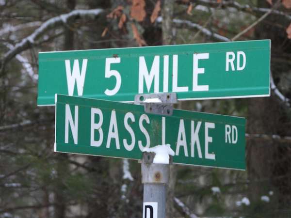 From Na Ta Ka, left on Bass Lake rd, follow past boat launch thru the curves and home will be on your left just before 8 mile road
