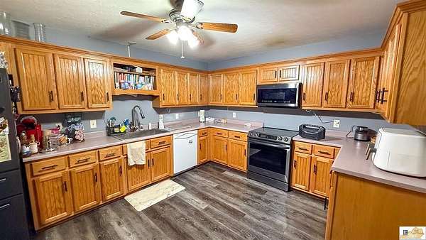 This is a beautiful property offering space, privacy, and convenience all in one. This charming 3-bedroom, 2-bath home with approximately 1,800 square feet sits on approximately 8 acres of mostly cleared, level land, perfect for enjoying the quiet countryside while still being within a short drive to local amenities. Inside, the home features a comfortable layout with spacious living areas, laminate flooring, and plenty of natural light. The primary suite includes a large walk-in closet and a walk-in shower, while the bathroom also offers a relaxing Jacuzzi tub with its own water heater, ensuring you always have hot water for a soak at the end of the day. Step outside and enjoy the open land with beautiful road frontage, making the property ideal for gardening, animals, or simply enjoying wide-open views. The property also includes a detached garage and an additional outbuilding, providing excellent storage or workshop space. Whether you’re looking for a peaceful homestead, hobby farm potential, or just room to spread out, this property offers the perfect blend of country charm and practical space.