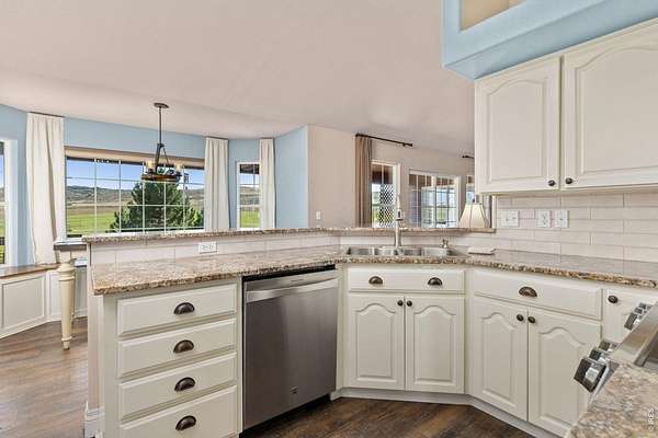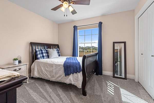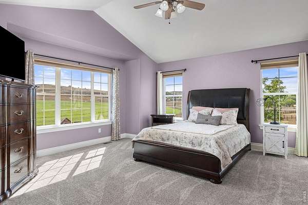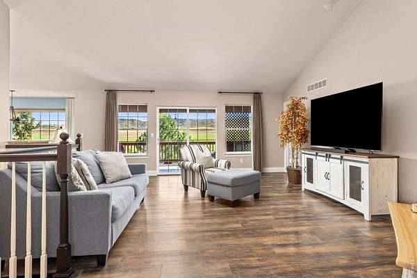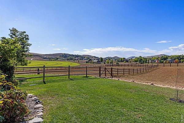 Discover a rare opportunity to own this beautifully maintained 3,643 sq ft ranch-style home in one of Loveland's most desirable west-side locations. The home has also been recently upgraded with a brand new Class IV impact-resistant roof, offering added durability and potential insurance savings. Nestled on 3 acres and backing to hundreds of acres of protected conservation land, the property offers both privacy and spectacular views. From the wraparound front deck, enjoy breathtaking foothills vistas, while the rear covered deck and patio frame expansive farmland and open space. Wildlife is frequently seen in the area, with elk and other native species often passing through. Designed for comfortable main-level living, the home features 3 bedrooms and 3 bathrooms on the main level, vaulted ceilings, abundant natural light, and seamless indoor-outdoor flow. The walk-out lower level adds exceptional versatility with a spacious family room, large bedroom, an additional new bathroom, and a convenient mini-kitchen-ideal for guests or multi-generational living. In addition, the home includes an oversized 910 sq ft three-car garage, providing ample room for vehicles, storage, or a workshop. East- and west-facing decks capture both sunrises and sunsets, making every day a chance to enjoy Colorado's natural beauty. The location blends the tranquility of a country lane with unbeatable convenience-just 20 minutes from Downtown Loveland, 40 minutes from Estes Park, 50 minutes to the entrance of Rocky Mountain National Park, and one hour from Denver International Airport. Outdoor enthusiasts will also appreciate the proximity to Carter Lake, Flatiron Reservoir, Pinewood Reservoir, and the future Chimney Hollow Reservoir opening in 2027. This is a home and setting that must be experienced in person to truly appreciate. Properties on Heart J Trail seldom come to market-don't miss your chance to make this serene retreat your own.
