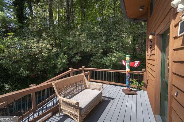 YOU MUST SEE this truly unique home with separate guest house, located just outside of Helen City Limits. Located just off of Hwy 75 Altnerate, this home has no HOA and no Covenants. It is a viable candidate for Short Term Rental with County Approval. Situated on top of a hill surrounded by 3.38 acres of wooded privacy. The primary home is 3 BR/3BA plus a 1 BR/1 BA guest house. Both houses have separate driveways and could be investment properties, for extended family or long term rental which is in very high demand. Tons of charm and character make this a truly special place. In the primary home, the living area has a vaulted ceiling and opens to the spacious updated kitchen and to the inviting sunporch. The main level has a bedroom and full bath. The second level is a loft bedroom with full bath. The terrace level has a flex room to be used as a den, or a bedroom. There is a workshop and plenty of additional storage on the terrace level. Plenty of parking area and a steel carport with high ceiling to accomodat an RV or large vehicles. The secondary home is 1 BR, 1 BA with a kitchen and living area. Sitting pretty at the top of the hill, this home has it's own power service and septic. Don't miss this charming property with such a wide array of possible uses!