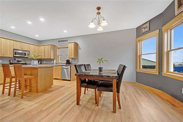 Inside the home, enjoy refinished Appalachian Eastern Red Oak hardwood flooring in the kitchen and dining area, along with fresh paint throughout the main level. Recent updates include a new dishwasher, new water heater, new water softener, new siding on the garage, and a new roof.