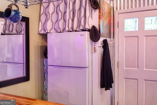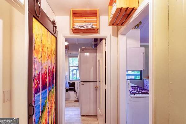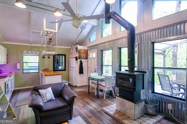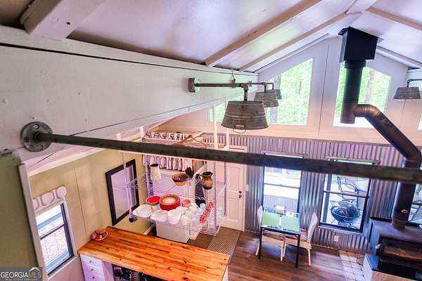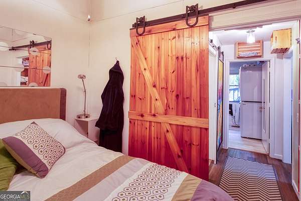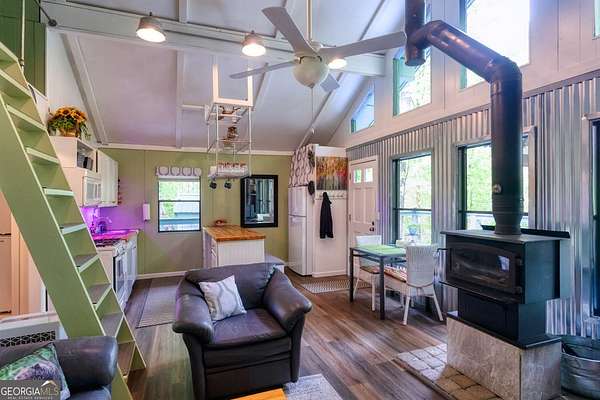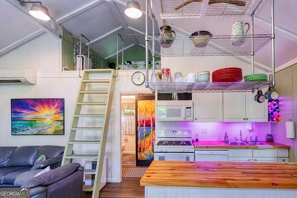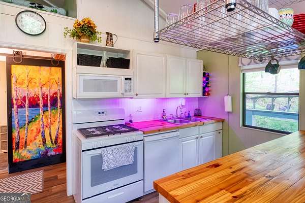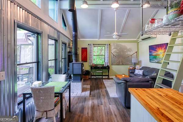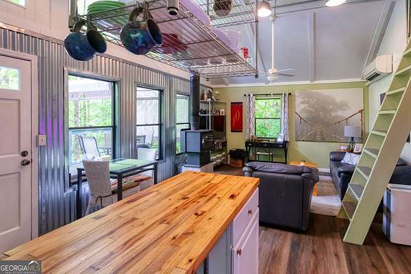 Charming mountain retreat in the heart of Sautee Nacoochee! This cozy 1-bedroom, 1-bath cabin with a sleeping loft offers the perfect blend of comfort and rustic character. Inside, you'll find durable LVT flooring throughout and a fully equipped kitchen featuring a range, dishwasher, microwave, refrigerator, double sink, and stylish butcher block countertops. Thoughtful design details like sliding barn doors add warmth and personality, while fresh exterior paint enhances curb appeal. Step outside onto the spacious deck and unwind to the soothing sounds of a nearby creek-an ideal setting for morning coffee or evening relaxation. A convenient carport provides covered parking. Located just minutes from National and State Parks for hiking and kayaking and a short drive to Helen for dining, shopping, and entertainment, this property makes an excellent full-time residence, weekend getaway, or investment opportunity.