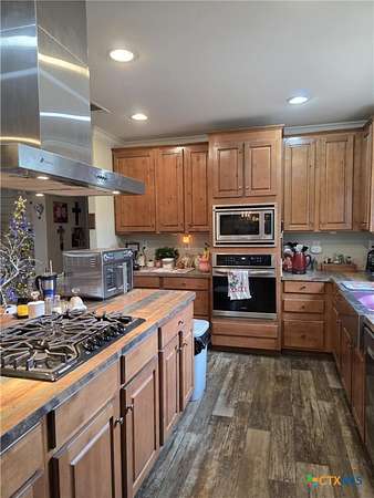 Built In Oven, Cooktop, Dishwasher, Disposal, Gas Cooktop, Microwave, Oven, Range Hood, Refrigerator, Some Gas Appliances, Vented Exhaust Fan, Water Softener Owned