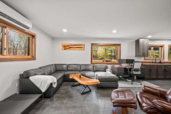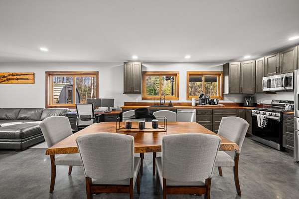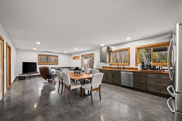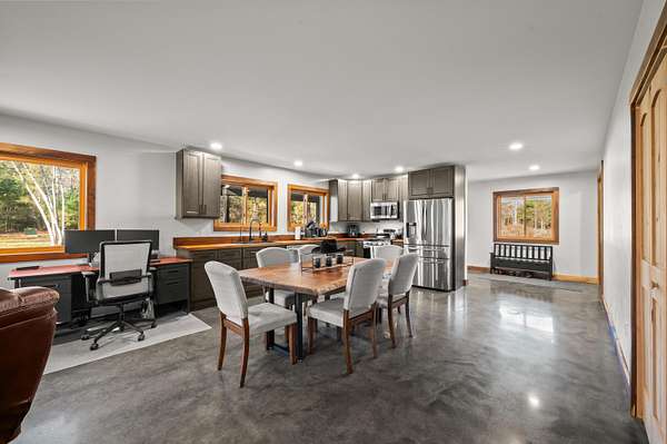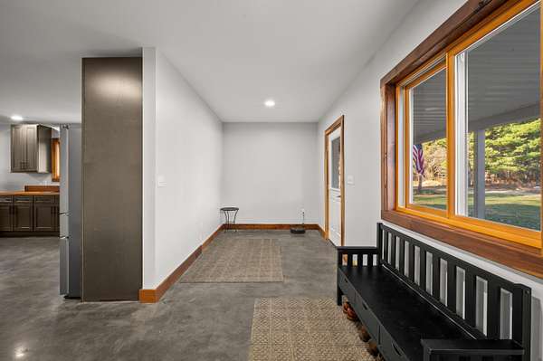 Discover this exceptional barndominium nestled on 50 breathtaking acres that border protected Natural Forestry land, offering unmatched privacy and year-round adventure. Just five minutes from Lake Michigan and a State Park with snowmobiling and four-wheeling trails, this property is the perfect blend of recreation and retreat. The home features in-floor heating, a full hunting setup, a premium water purification system with reverse osmosis, and an inviting outdoor sauna with a cold plunge. Enjoy a heated driveway, a spacious covered porch, and panoramic views in every direction. The land is a hunter's dream with established trails cut throughout, sprawling blueberry fields, and abundant wildlife. Whether used as a full-time residence, a luxurious vacation getaway, or a nature lover's paradise, this property delivers the ultimate escape. This property also includes a renovation ready property that has 3bed and 1bath with strong potential investment once restored.