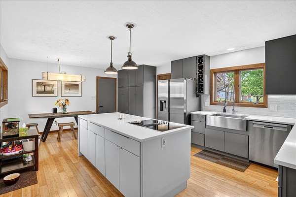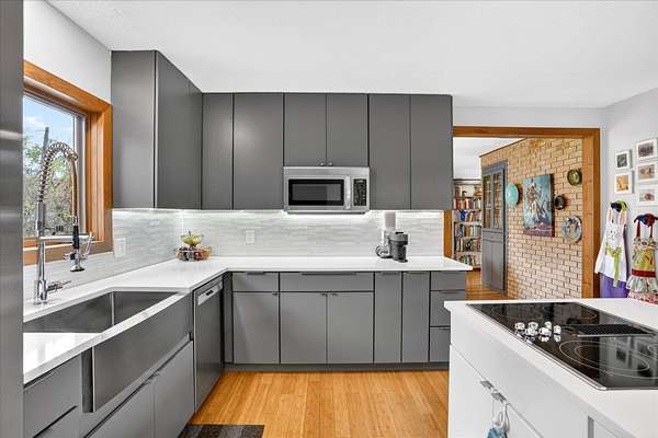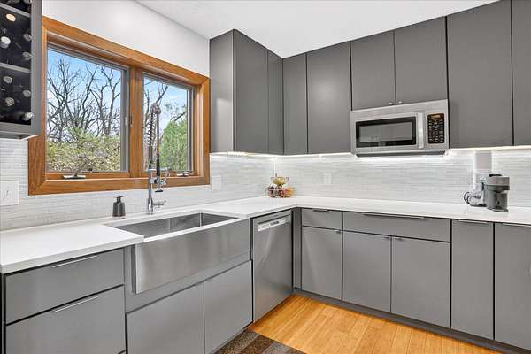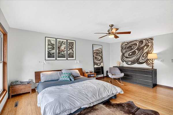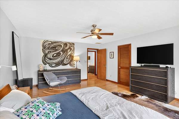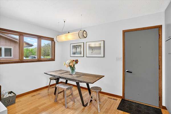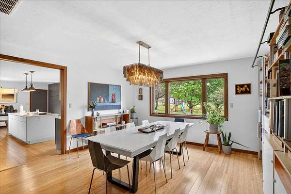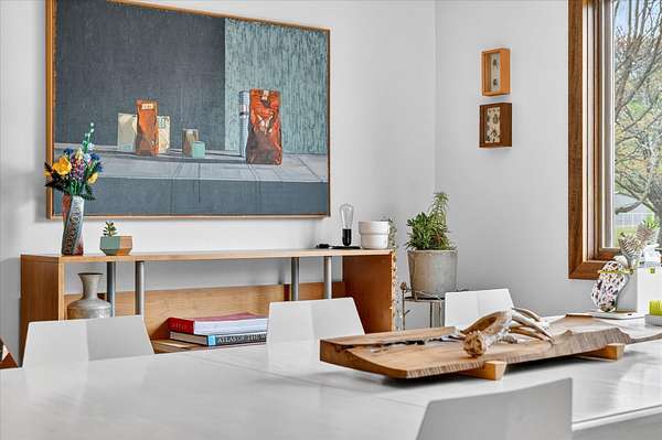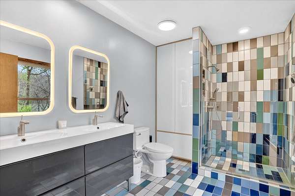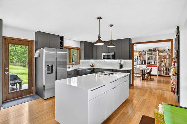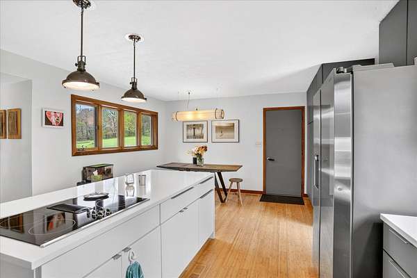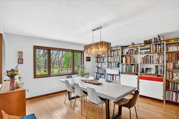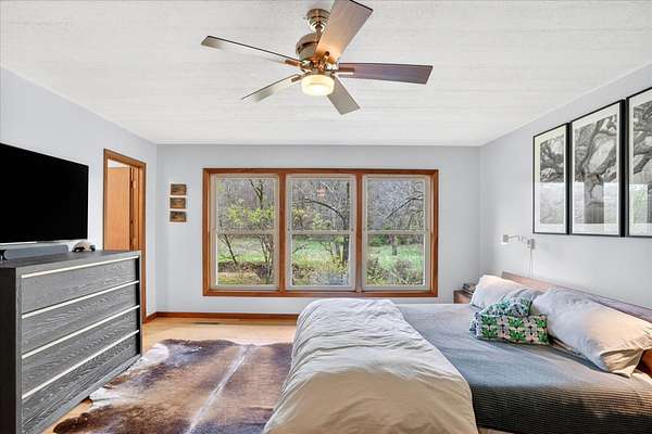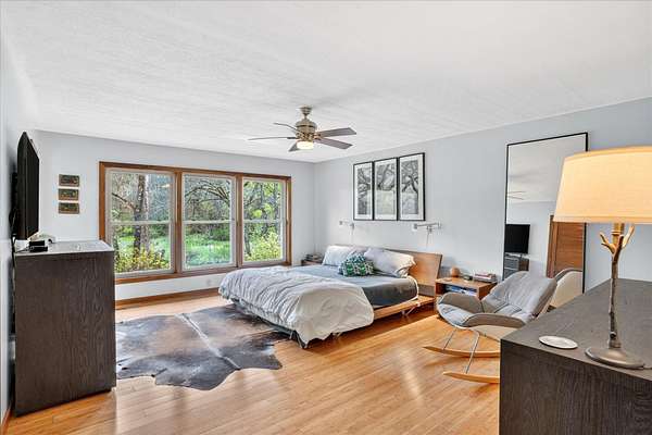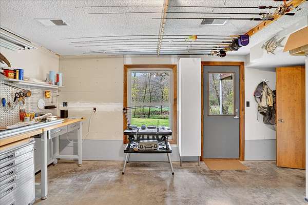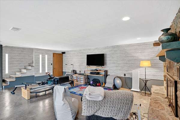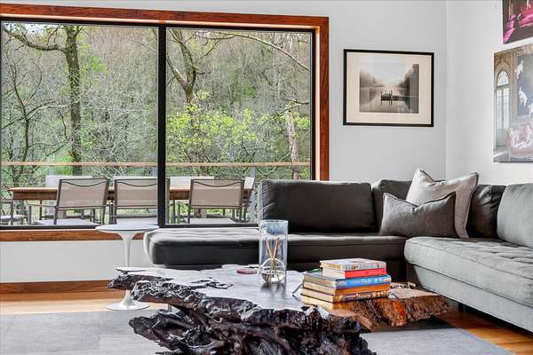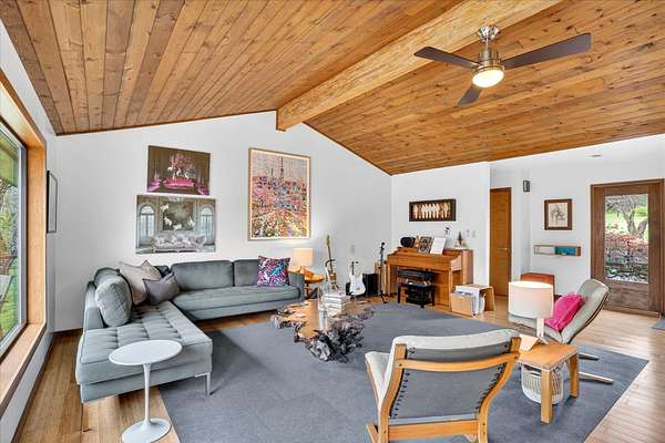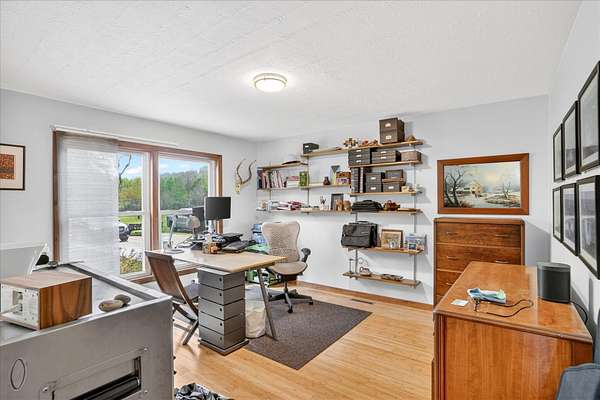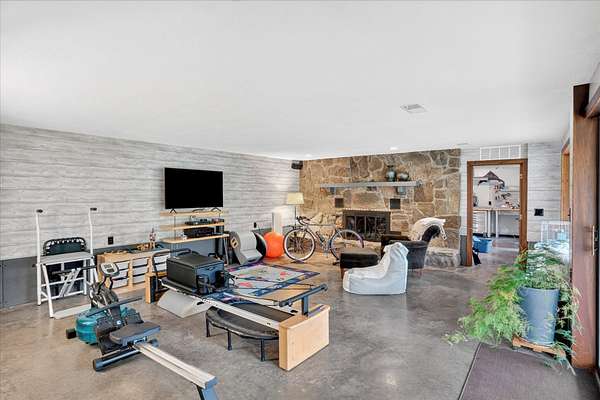 Set on just over 18 acres south of Halltown, this property offers a setting and design that immediately stand apart. From the moment you arrive, the combination of stone, warm wood tones, and surrounding landscape creates a quiet, tucked-away presence. Inside, the home leans into a mid-century modern influence with soaring wood ceilings, statement fireplaces, and walls of glass that pull in natural light and frame the views beyond. Thoughtful updates blend clean, modern finishes with the character that gives the home its warmth. The layout offers both function and flexibility, with a private primary suite upstairs alongside a guest bedroom and bath, while the lower level provides additional bedrooms or office space. The primary bath features imported Italian tile, adding a subtle layer of quality and design. A dedicated work room creates space for a home office, hobbies, or homeschooling without disrupting the home's flow. The kitchen anchors the main living area with an elevated, functional design, while the dining and living spaces feel connected yet defined, creating a natural place to gather. Outside, the setting continues with usable acreage, mature trees, and an all-weather creek that adds both movement and character, supported by numerous structural and landscaping improvements. The property is well-equipped for a variety of uses with two wells, one serving the home and one dedicated to the outbuildings, along with two electrical meters for added flexibility. A barn, chicken coop, and additional outbuilding further expand the possibilities for animals, projects, or simply enjoying the space, all just a short 20 minute drive from Springfield.