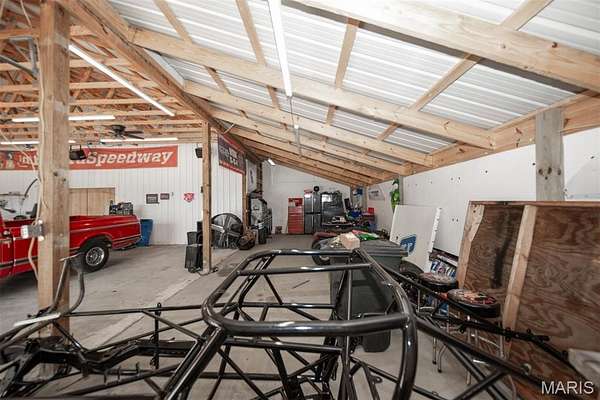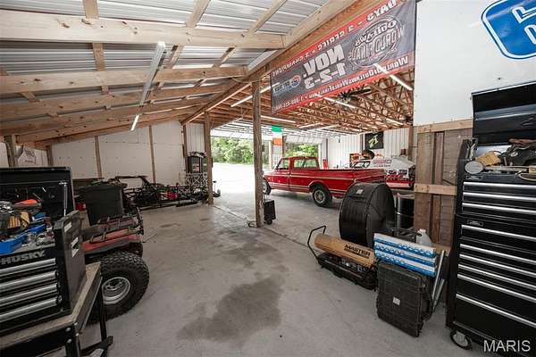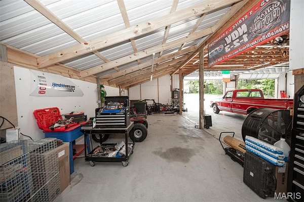 A massive 3,700+ sq ft garage with water and electric, complete with four oversized doors, a dedicated workshop, and a separate parts room. Whether you envision a dream space for an expansive car collection or the perfect setup for a horse barn with open pasture, the possibilities are endless.