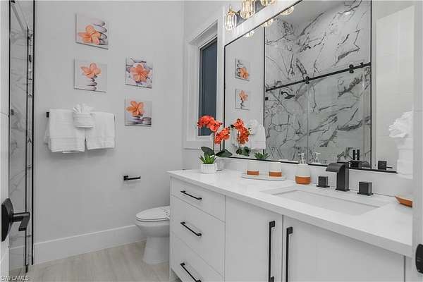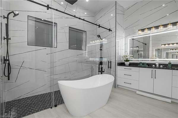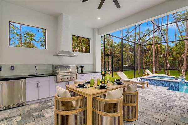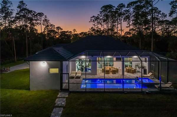 Discover the perfect combination of luxury living and strong investment potential with this stunning estate situated on 2.73 acres in Naples, just minutes from Collier Blvd and close to shopping, dining, and beautiful Gulf beaches. This exceptional residence offers over 4,094 square feet under roof and is thoughtfully designed for both comfortable living and entertaining. The home features 4 spacious bedrooms, a dedicated office, and 4 modern bathrooms, each finished with stylish mirrors and integrated lighting that combine comfort with contemporary elegance. The custom-designed kitchen showcases beautiful cabinetry and generous workspace, making it perfect for everyday living and hosting guests. Throughout the home, walk-in closets with built-in cabinetry provide ample storage and organization. Built with quality and efficiency in mind, the property includes spray foam insulation, two AC units for optimal climate control, impact-resistant windows and doors, and a durable tile roof with stem wall construction, offering both durability and peace of mind. The 3-car climatized garage adds exceptional versatility. Currently staged as a game and entertainment room, the space can easily serve as a garage, workshop, storage area, or additional recreational space depending on your needs. The home also features an integrated Sonos audio system, allowing seamless sound throughout the main living and entertainment areas. A whole-house reverse osmosis system ensures excellent water quality throughout the property, enhancing daily comfort. Step outside and enjoy your own private outdoor retreat. The expansive outdoor area features a large pool and spa surrounded by a spacious deck, ideal for relaxing or entertaining. The covered lanai with summer kitchen is fully equipped for outdoor dining and gatherings, creating the perfect Florida lifestyle setting. Offered fully furnished turnkey, this property is ready for immediate enjoyment. In addition to being a spectacular primary residence or vacation home, it also presents an excellent income-producing opportunity, with strong rental potential capable of generating over $120,000 annually. Whether you are looking for a luxury private residence, vacation retreat, or high-performing investment property, this exceptional Naples estate offers the ideal blend of privacy, space, quality, and income potential.